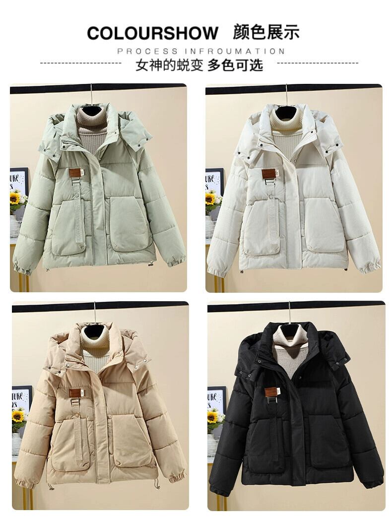 大きいサイズ 2023 冬の新ファットシスター女性の長袖無地ジッパーフード付き取り外し可能なデザインダウンジャケット ロング 大きめサイズ ウィンター 冬物 ソリッドカラー 8884161896569291