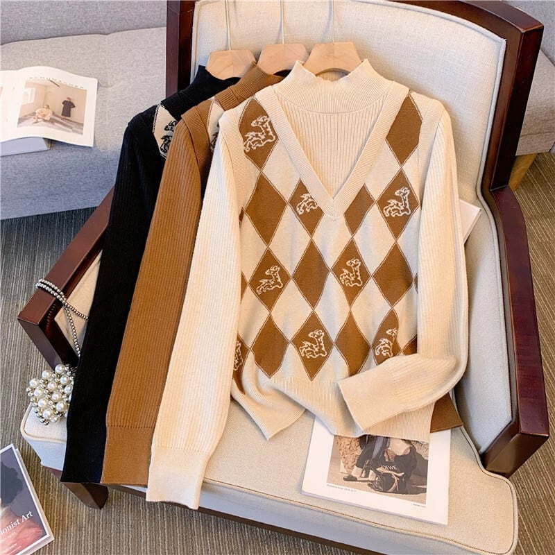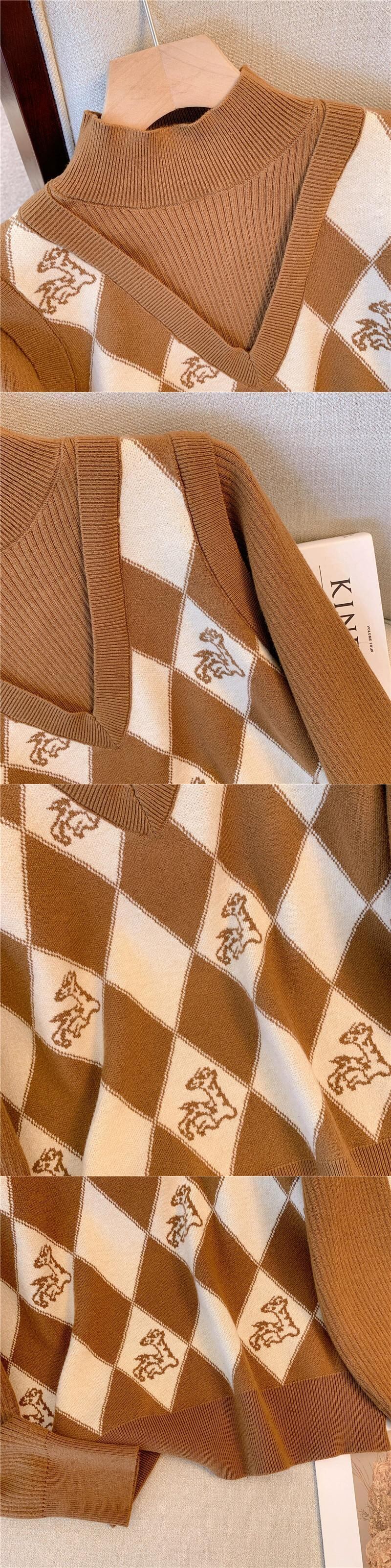 大きいサイズ 2023 新しい秋脂肪姉妹婦人服偽ツーピースレイヤードファッショナブルなスタイルのハーフタートルネック長袖セーター ロング レッド 大きめサイズ オータム 秋物 8884137475978498