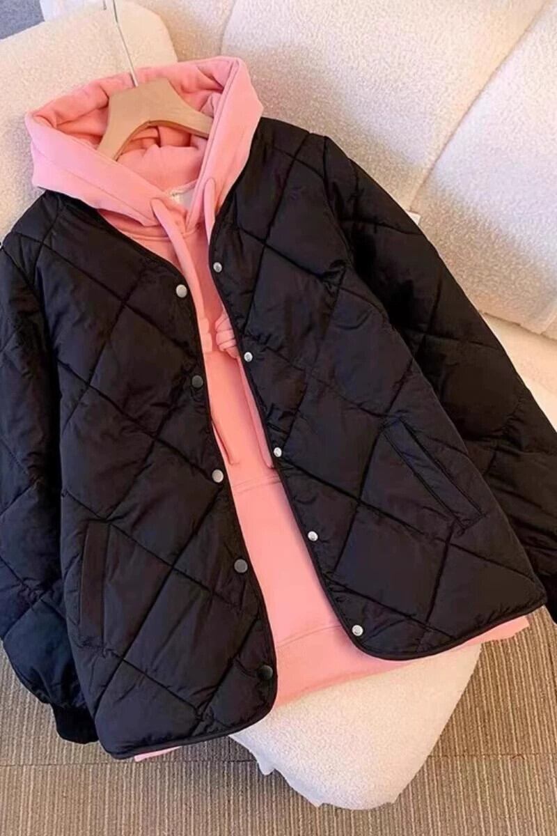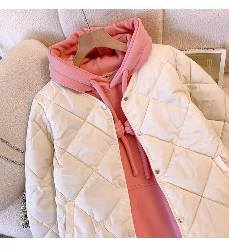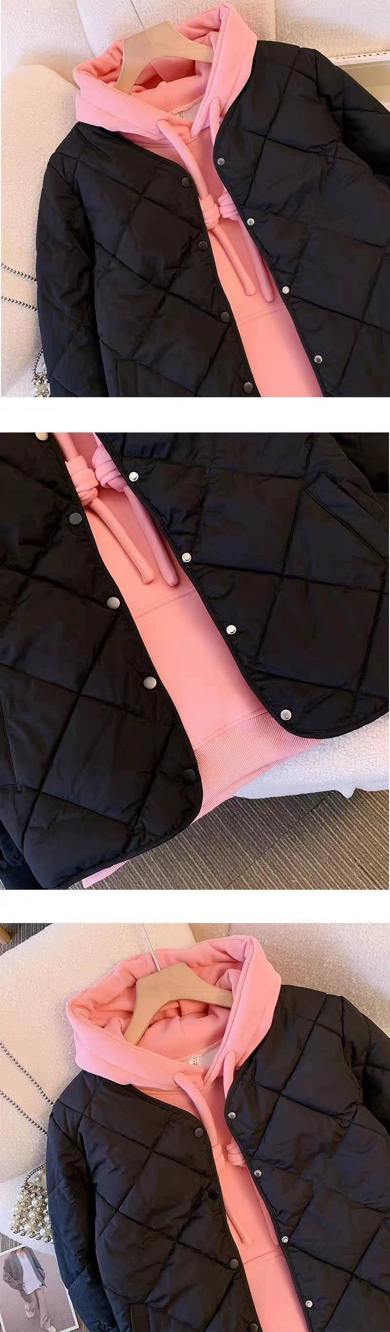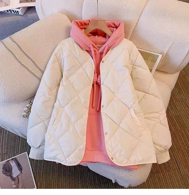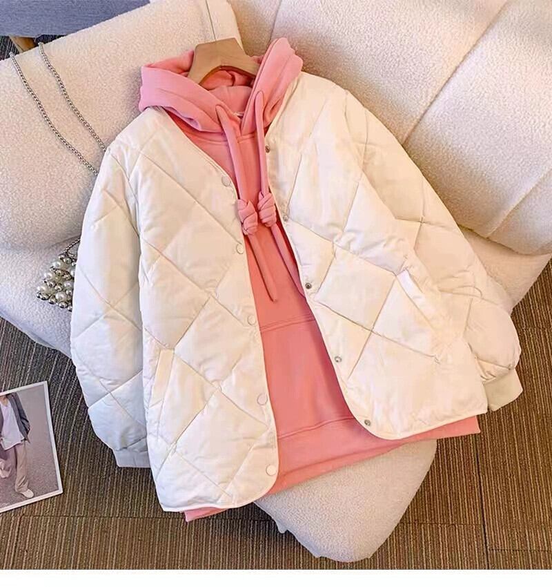 プラスサイズの秋の新婦人服脂肪 MM 無地ルーズ痩身シックな菱形西洋スタイル無地綿肥厚ジャケット コットン 大きめサイズ オータム 秋物 ソリッドカラー 8884167832592211