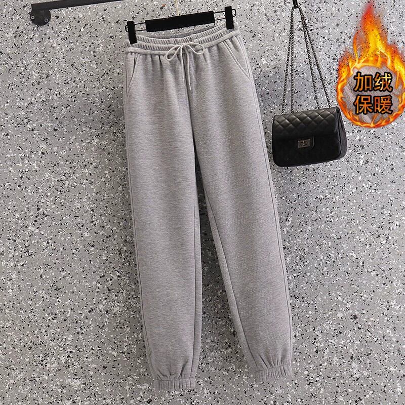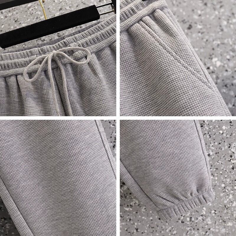 プラスサイズの女性の 2023 冬の新しいファット mm プラスベルベット厚みのあるワッフルスウェットパンツは、トレンディなカジュアルスポーツパンツを着用します 大きめサイズ ウィンター 冬物 8884169485760297