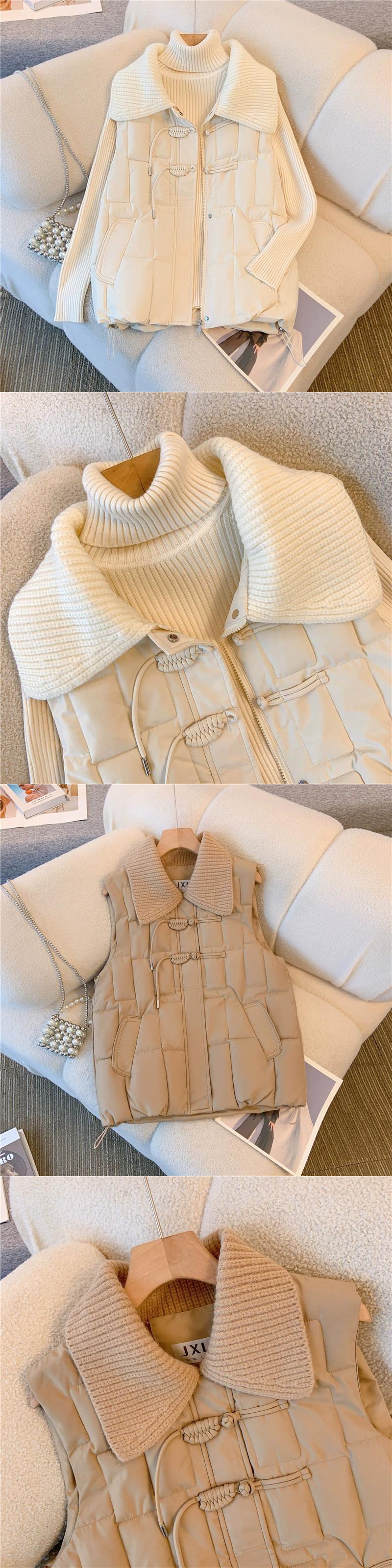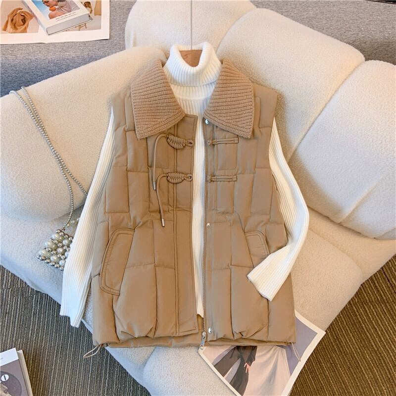 大きいサイズ 2023 冬の新ファットシスター婦人服ラペル無地ノースリーブジッパールーズダウンコットンジャケットトレンディ 大きめサイズ ウィンター 冬物 ソリッドカラー 8884190468515484