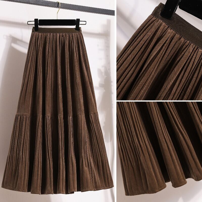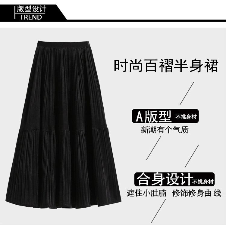 プラスサイズの婦人服秋と冬 2023 新しいファット mm デザインプリーツスカートファッショナブルで多用途な年齢を減らす大きな裾スカート女性 大きめサイズ オータム 秋物 ウィンター 冬物 8884190523517533