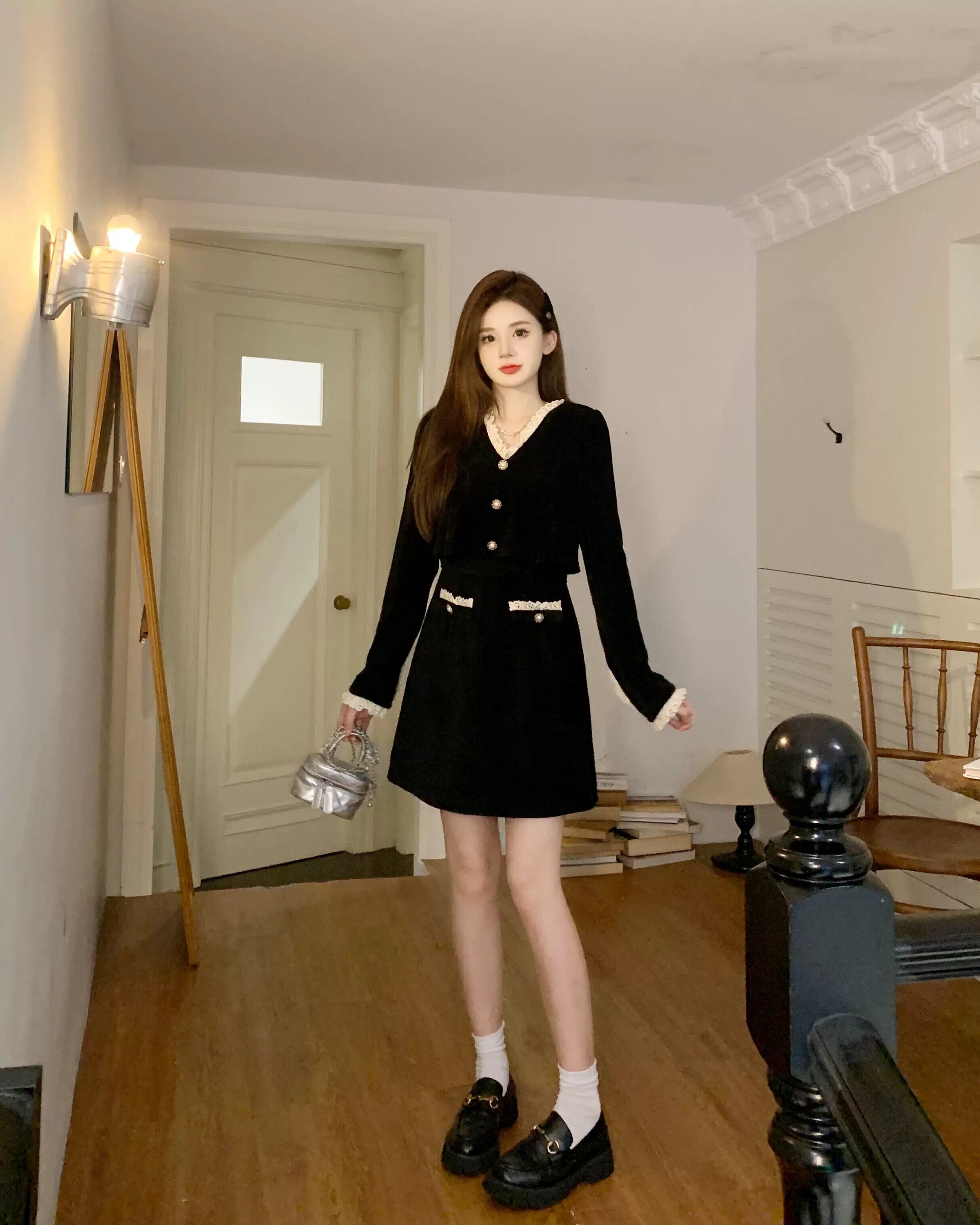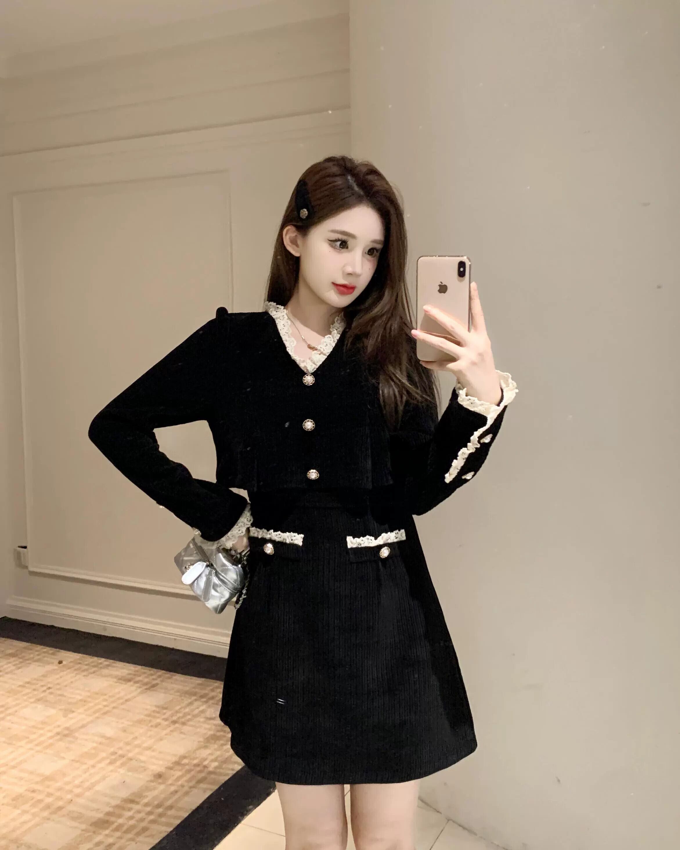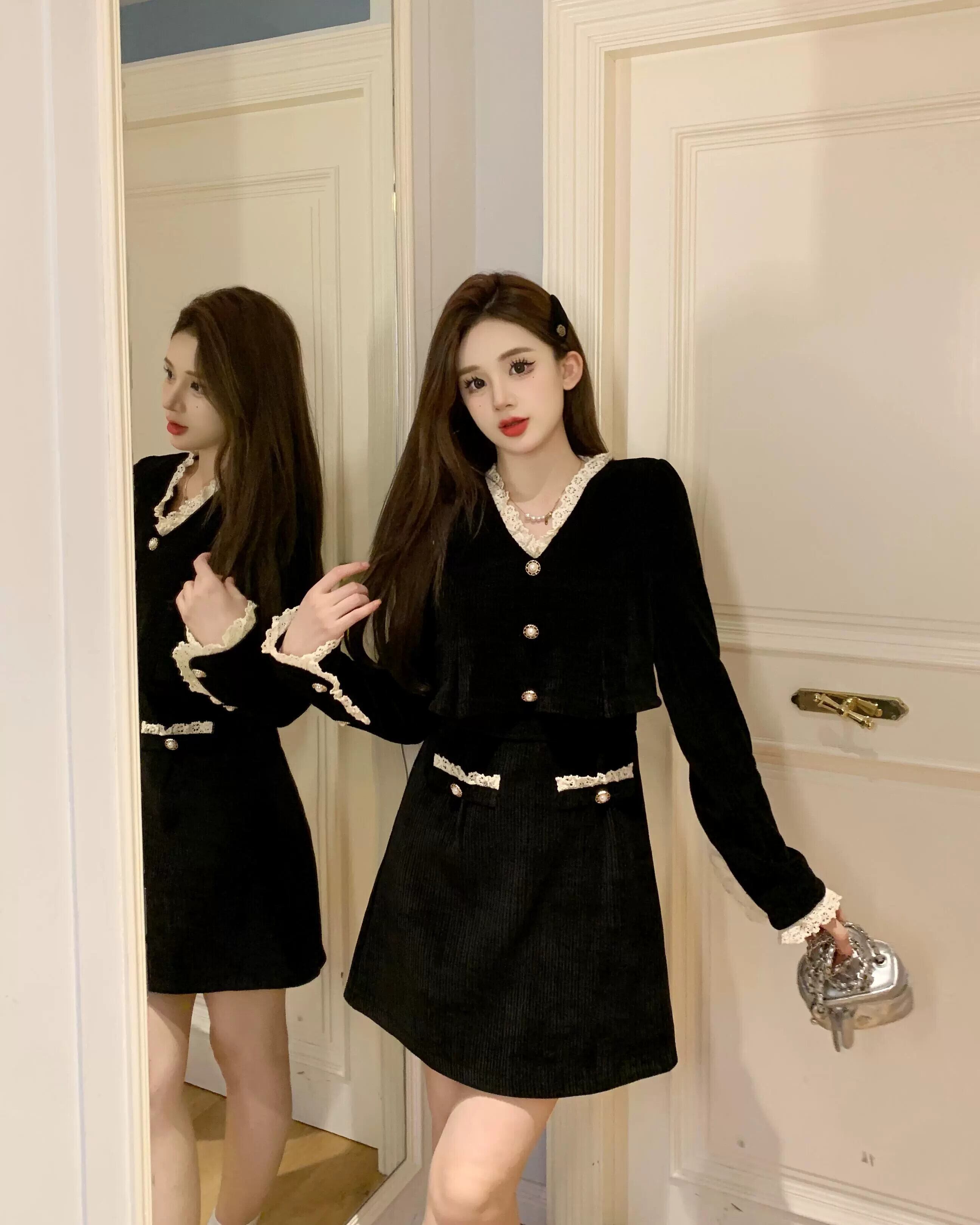 プラスサイズの婦人服 2023 トレンディな秋の新しい脂肪フランスのハイエンドの絶妙な A ラインスカート姿を示す多用途ドレス 大きめサイズ オータム 秋物 Aライン 8884145893256035