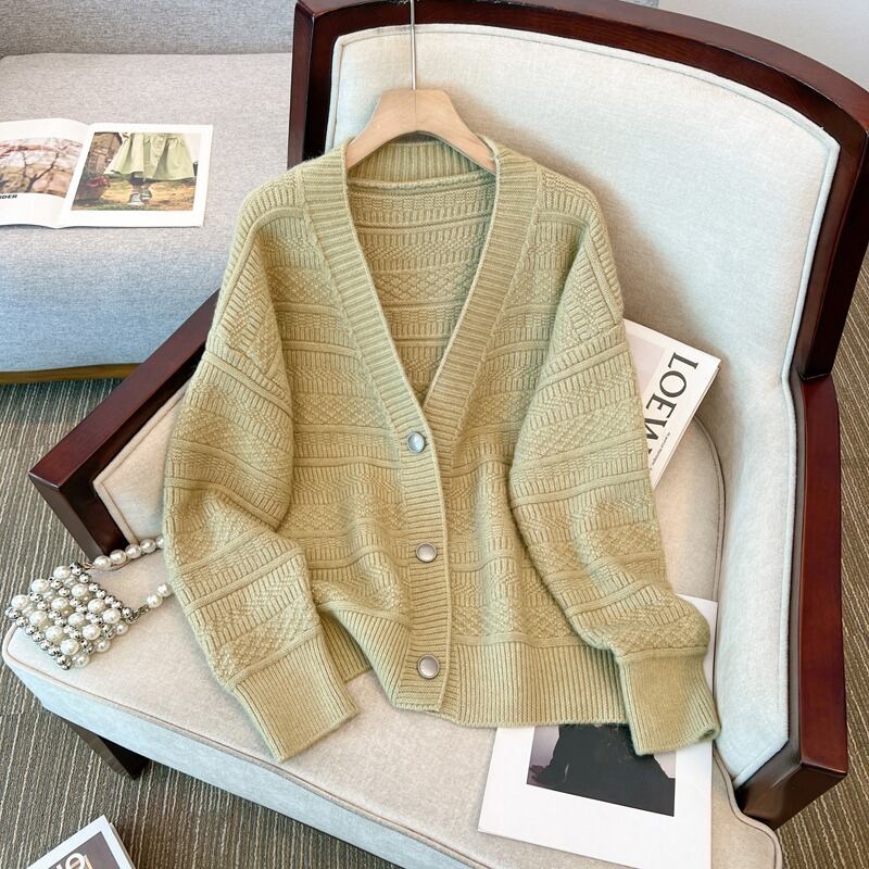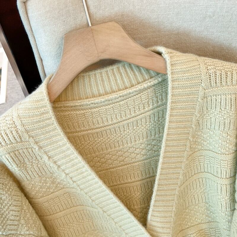 女性の大きいサイズのニットウェア 2023 秋冬の新作 V ネック長袖シングルブレストファッションルーズでスリムなカーディガンセータートレンド ロング 大きめサイズ オータム 秋物 ウィンター 冬物 Vネック 8884144650873230