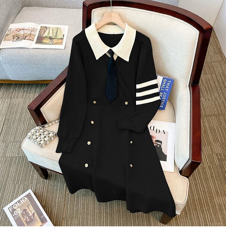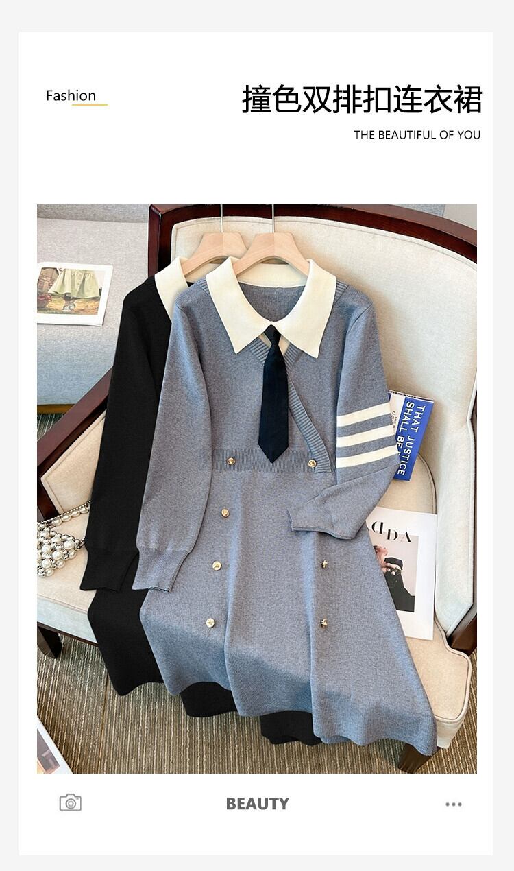 プラスサイズの婦人服 2023 トレンディな秋の新脂肪姉妹フレンチポロカラーウエストドレスハイエンド痩身ロングスカート 大きめサイズ オータム 秋物 8884133548596132