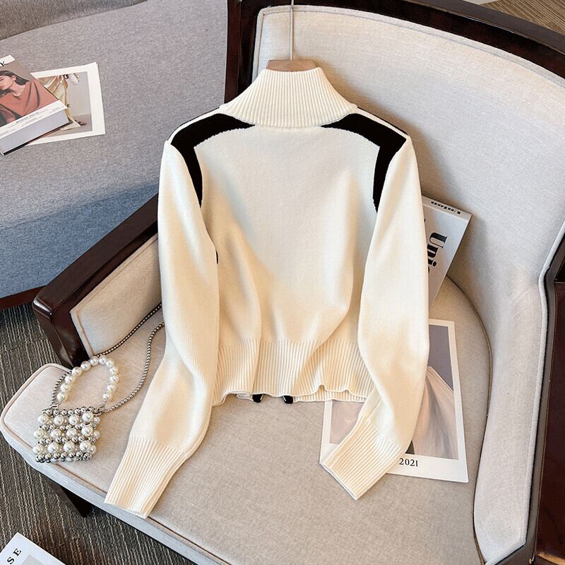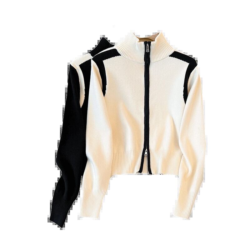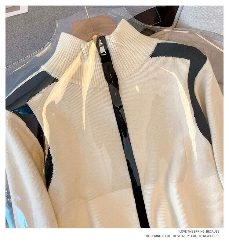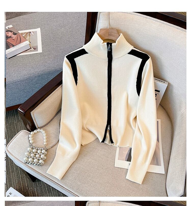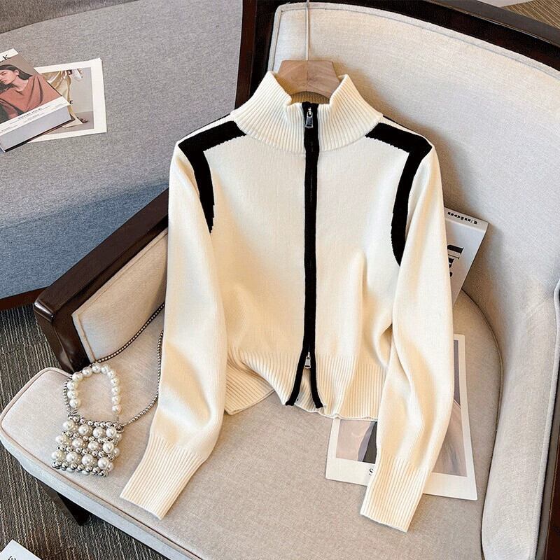 スタイリッシュなデザインとトレンディなニットカーディガンを備えた大きいサイズの秋の新しいショートダブルジッパーセータージャケット太った女性 大きめサイズ オータム 秋物 8884190531108861