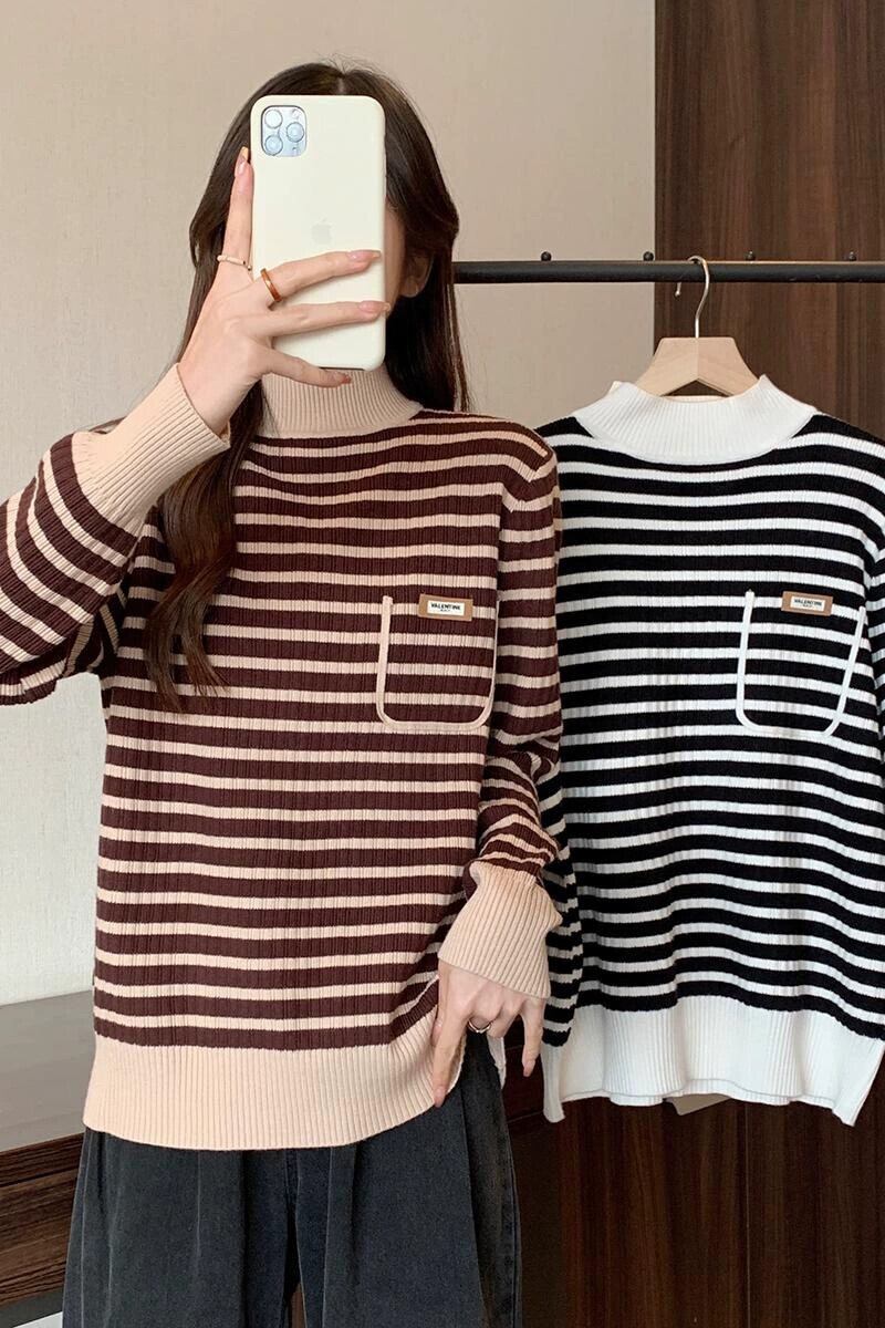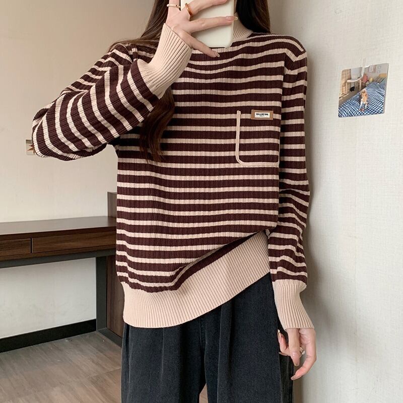 プラスサイズの婦人服 2023 トレンディな秋の新ファットシスターファッションストライプウールセータールーズ痩身年齢軽減トップ 大きめサイズ オータム 秋物 8884122265755972