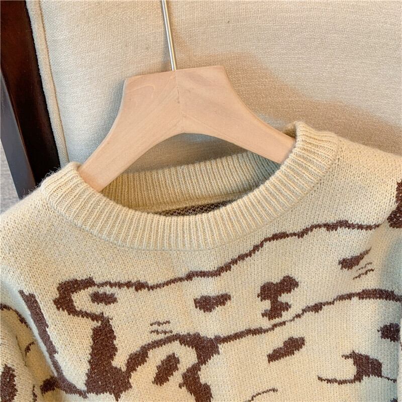 プラスサイズの秋の新クマラウンドネック長袖セーター女性脂肪 MM ファッションニッチデザインルーズセータートレンド ロング 大きめサイズ オータム 秋物 Oネック 8884114534485077