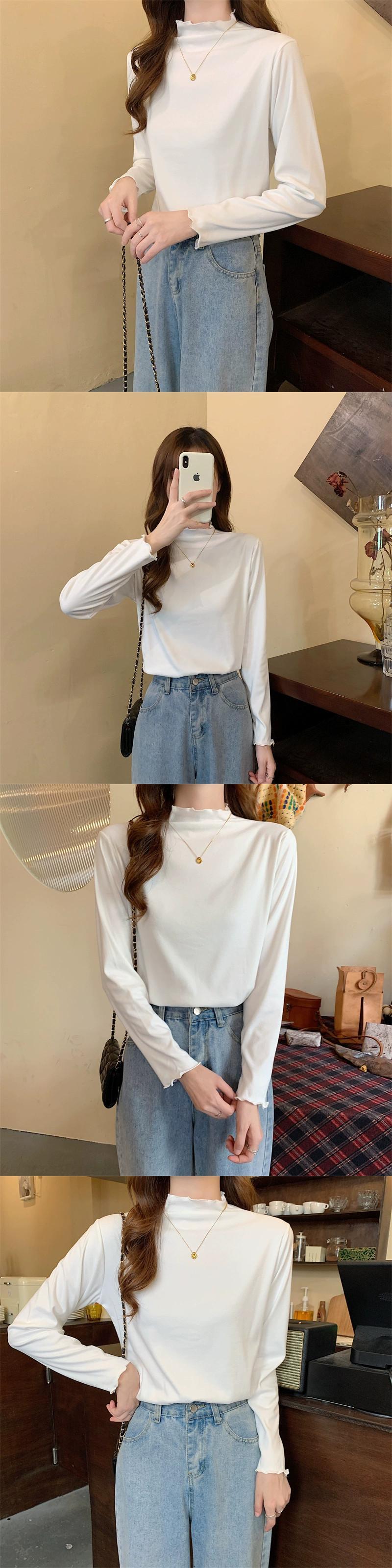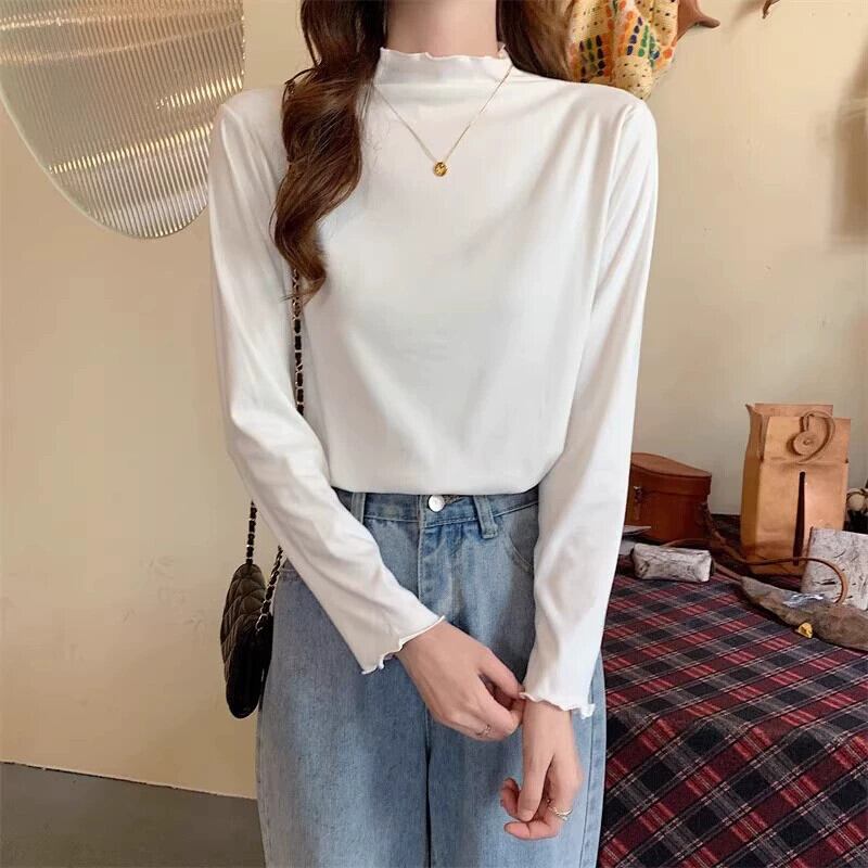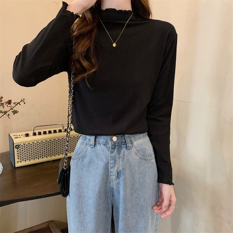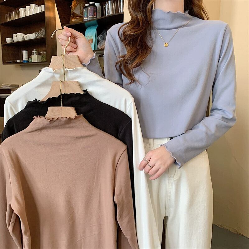 プラスサイズ秋 2023 新しい無地ハーフタートルネックボトリングシャツ脂肪ミリメートル女性ファッショナブルな腹カバー長袖トップ真菌 ロング 大きめサイズ オータム 秋物 ソリッドカラー 8884188660805940