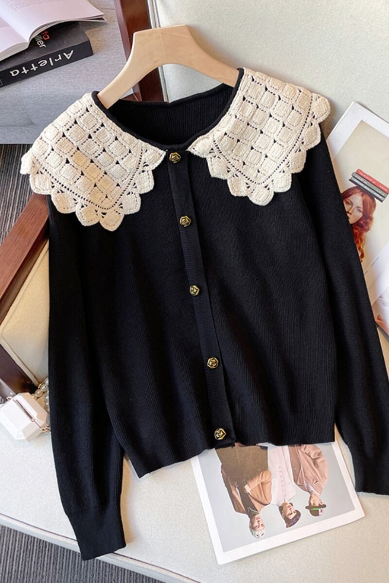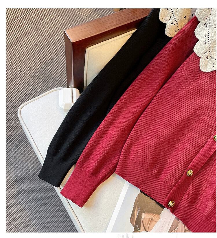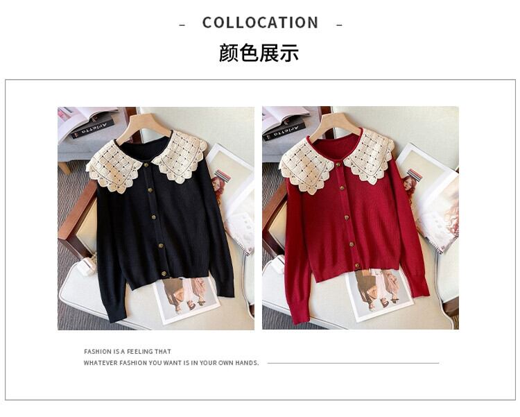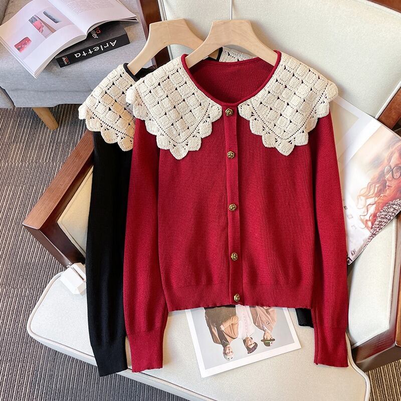 プラスサイズの女性の 2023 新しい秋スタイル痩身ルーズ人形襟デザインニッチレッドニットセーター 大きめサイズ オータム 秋物 8884152238295896