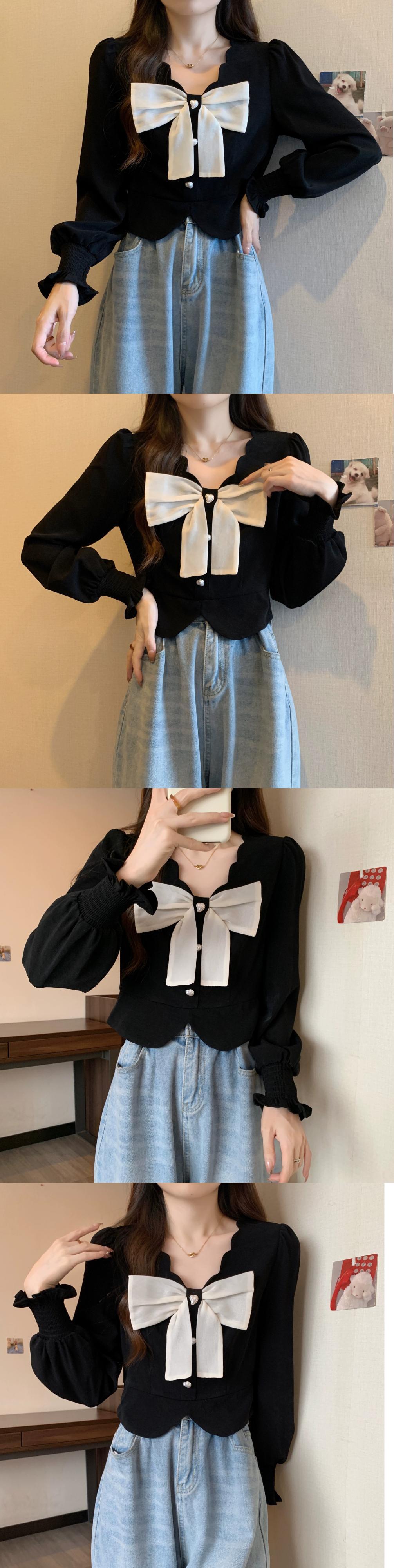 大きいサイズフレンチデザインリボン長袖ショルダーシャツレディース秋新作アウター重ね着シャツおしゃれトップス ロング 大きめサイズ オータム 秋物 8884138858008816