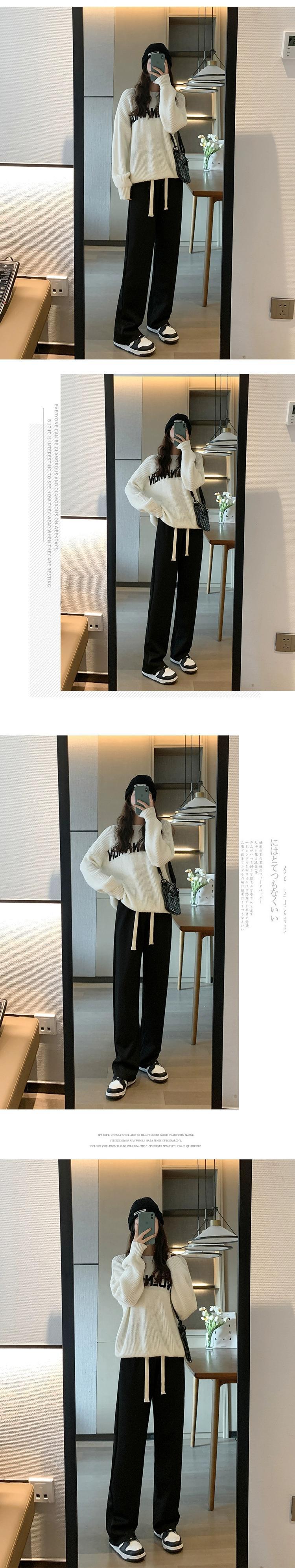 プラスサイズの婦人服 2023 トレンディな秋の新しいファットシスターハイウエストルーズストレートストレートフロアレングスワイドレッグパンツプラスベルベットカジュアルパンツ ハイウェスト 大きめサイズ オータム 秋物 8884132623443716