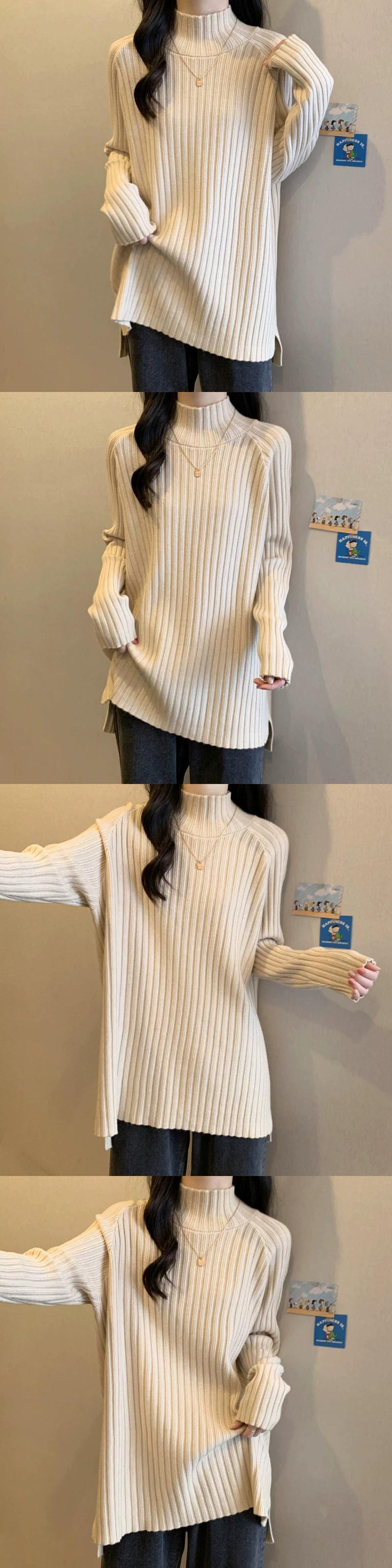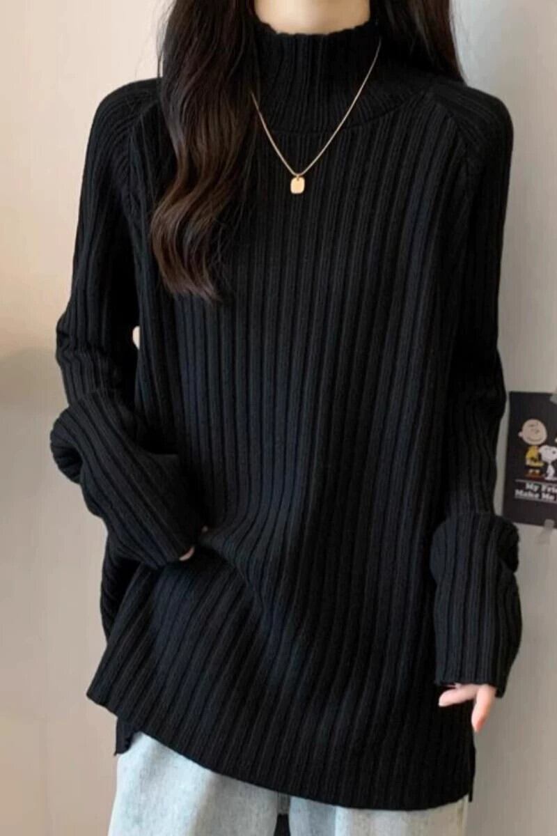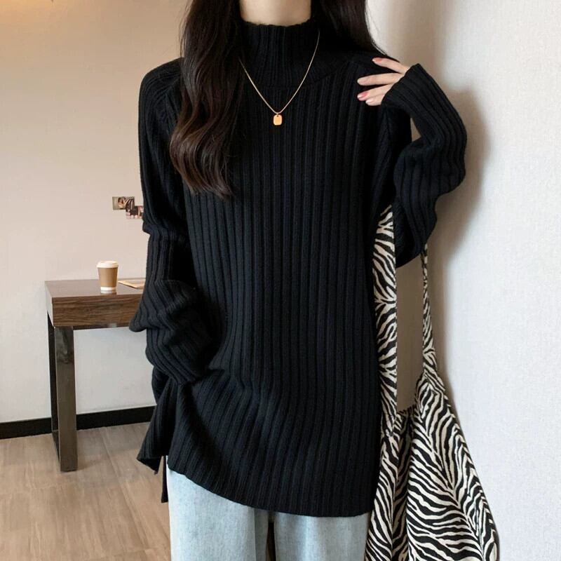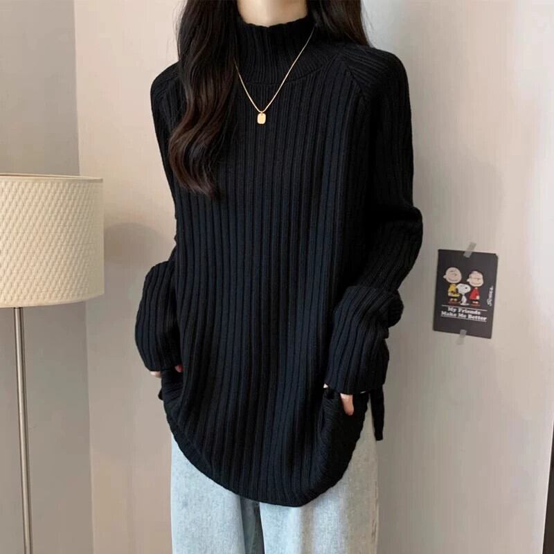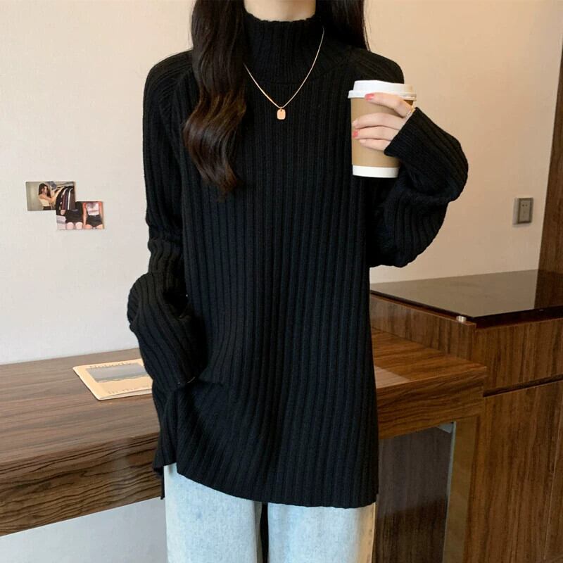 プラスサイズの女性のお腹を覆うハーフタートルネックの怠惰なセーターは、秋と冬に太って、ニットボトムシャツでスリムに見えます 大きめサイズ オータム 秋物 ウィンター 冬物 8884192305866207