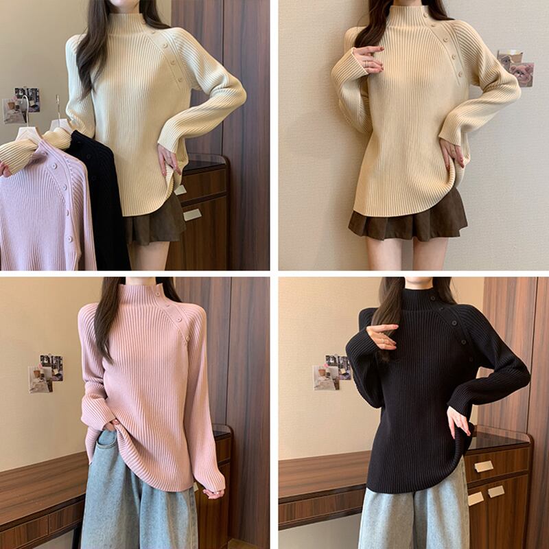プラスサイズの女性の 2023 トレンディな秋スタイルファットシスター怠惰なレトロトップ無地多用途スリムニットセーター女性 大きめサイズ オータム 秋物 ソリッドカラー 8884147889148447