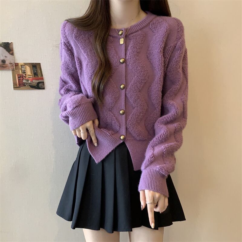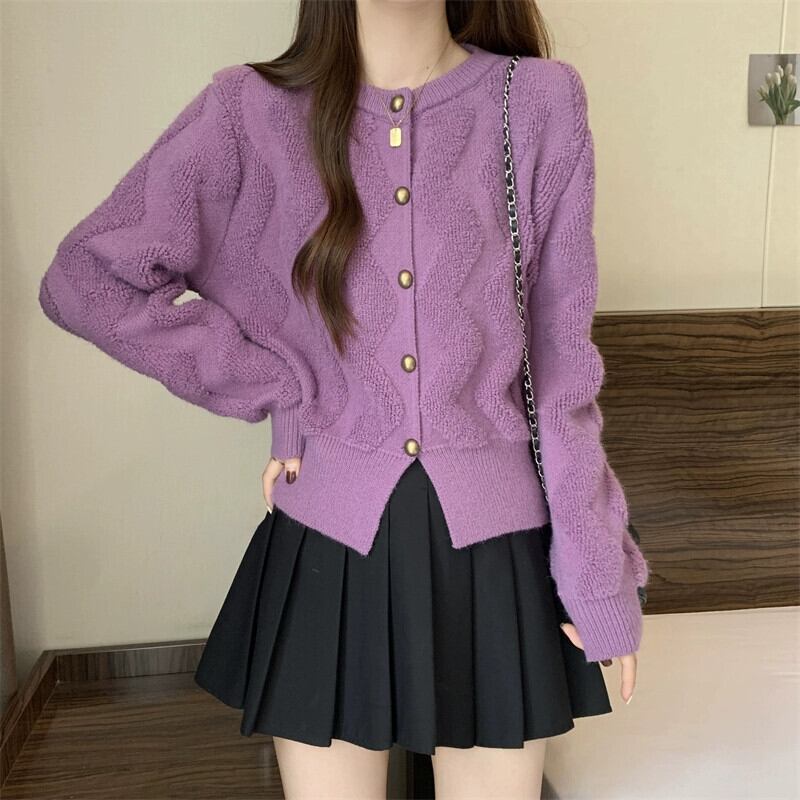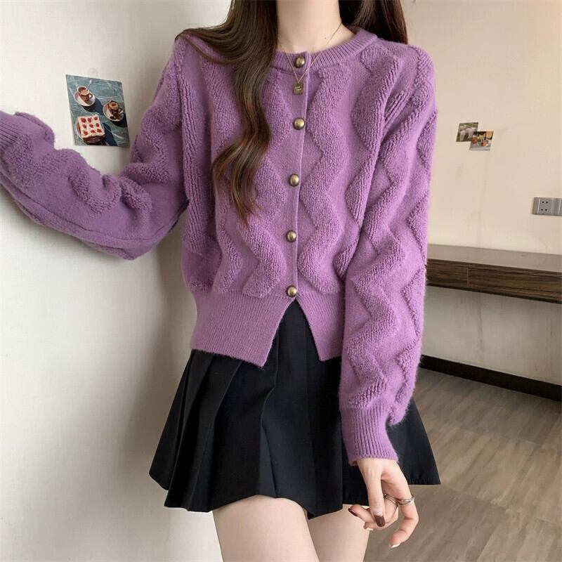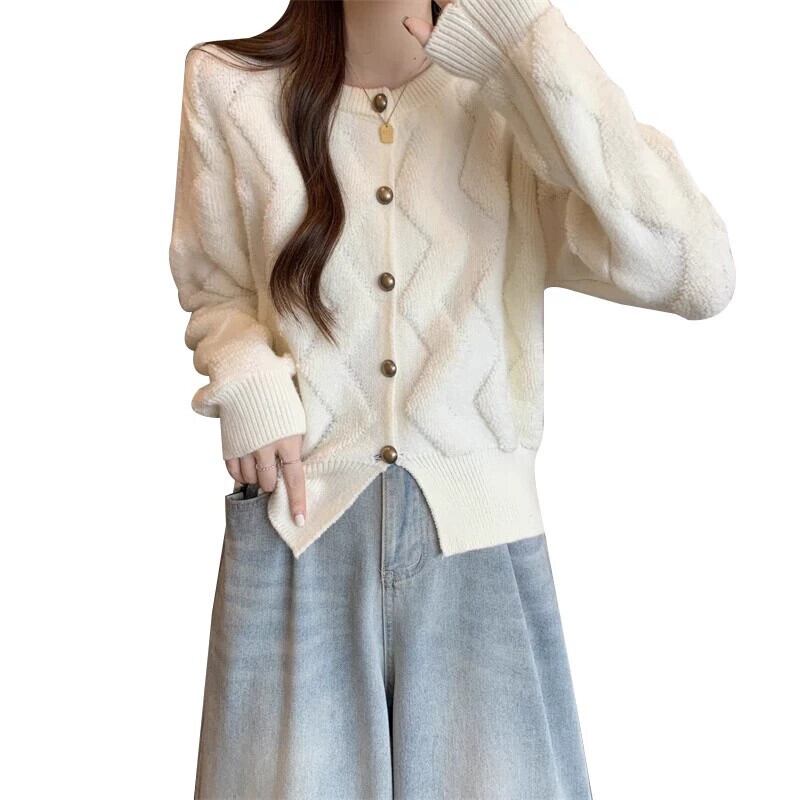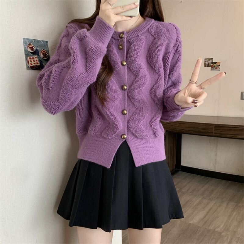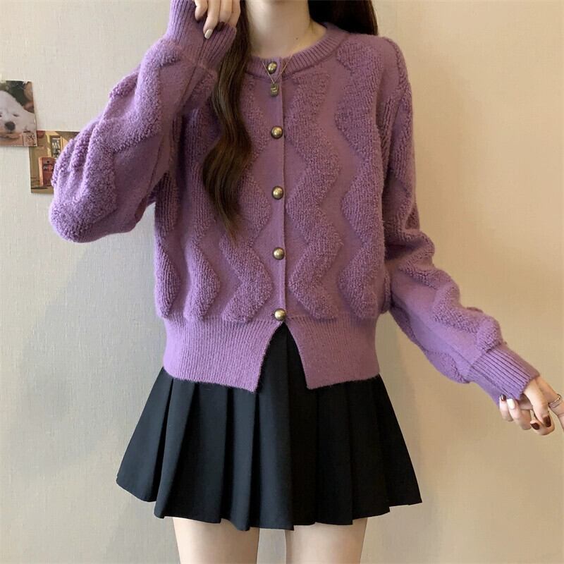 プラスサイズの女性のラウンドネックニッチシングルブレストカーディガンセーター女性の秋と冬の新しい多用途厚いスタイル痩身ニットトップ 大きめサイズ オータム 秋物 ウィンター 冬物 Oネック 8884115786849620