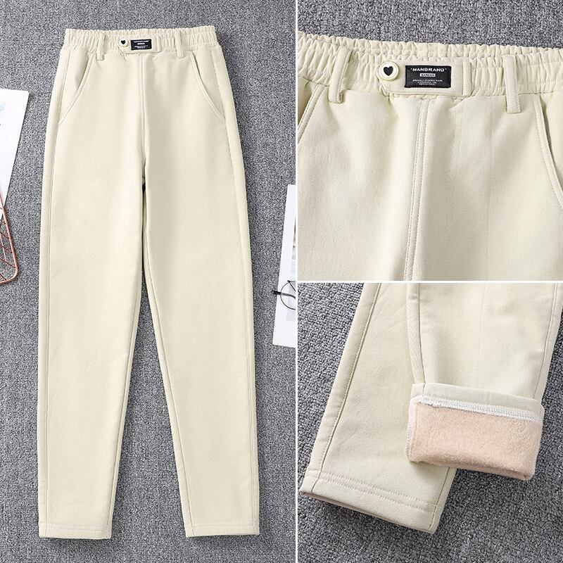 冬の新しい大きいサイズプラスベルベットと厚みのあるパパワイドレッグカジュアルレディースパンツファットMM弾性ゆったり暖かいキャロットパンツトレンディ エラスティック 伸縮 大きめサイズ ウィンター 冬物 8884116604425071