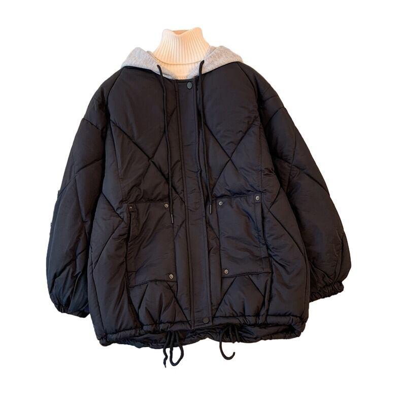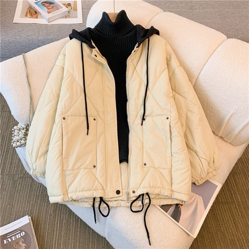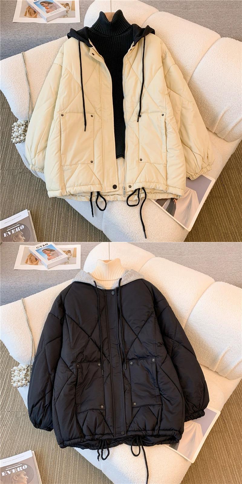 プラスサイズの婦人服 2023 トレンディな秋の新しいファットシスターバージョンカラーマッチングフード付きフェイクツーピースコットンルーズで多用途なジャケット 大きめサイズ オータム 秋物 8884143332949501