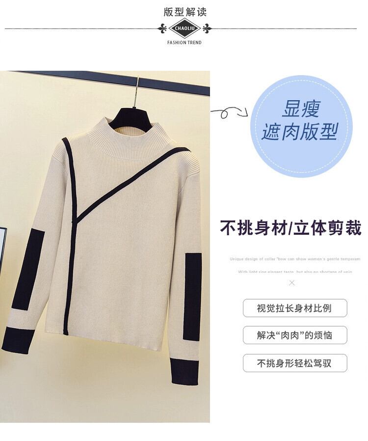 ニットセーター女性の下着西洋スタイル 2023 秋冬新作大きいサイズ脂肪ミリメートルファッショナブルなハーフタートルネックボトミングシャツトレンド 大きめサイズ オータム 秋物 ウィンター 冬物 8884174542425224