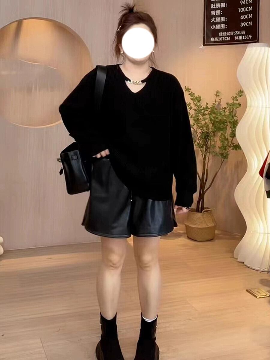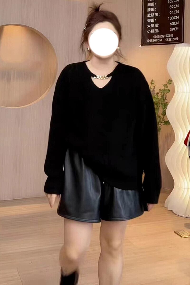 大きいサイズ レイジー風チェーンニットセーター 秋冬人気 デブMM 今年人気の着痩せルーズインナートップス 大きめサイズ オータム 秋物 ウィンター 冬物 8884165550955272