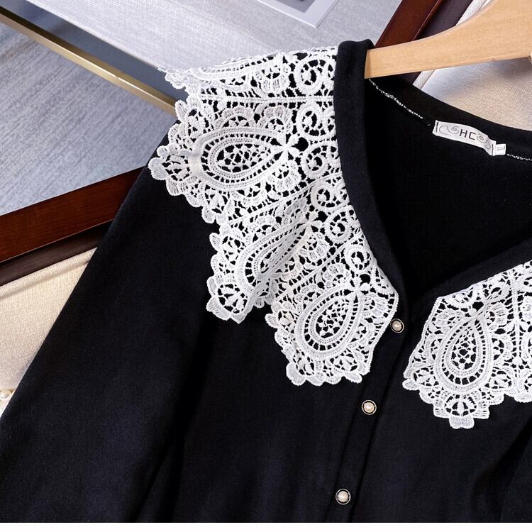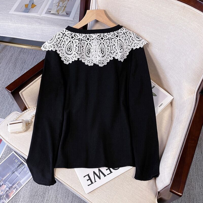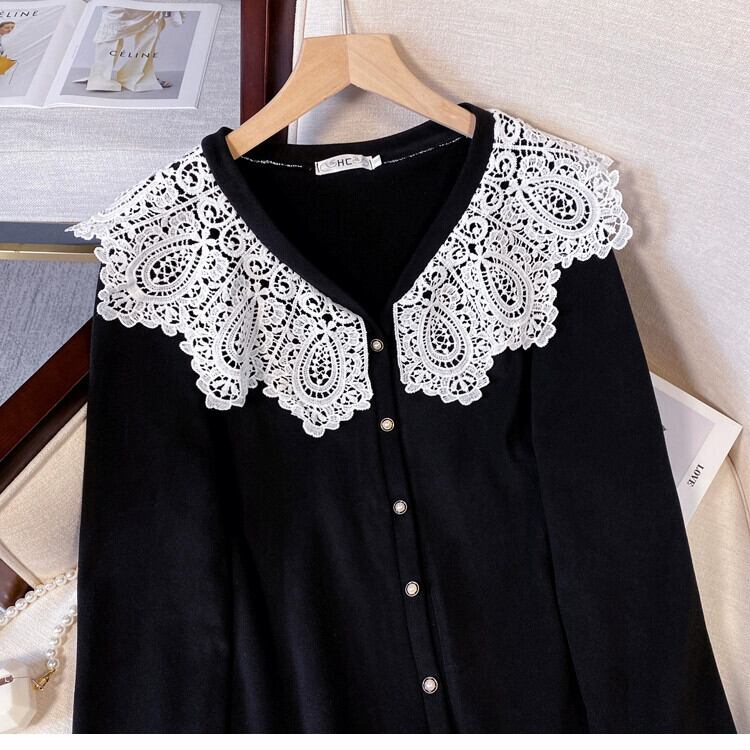 大きいサイズ 2023 秋冬新作ファット mm 女性のレースステッチ V ネック長袖ボタン付き厚く暖かいカーディガントップ ロング 大きめサイズ オータム 秋物 ウィンター 冬物 Vネック 8884176027834631