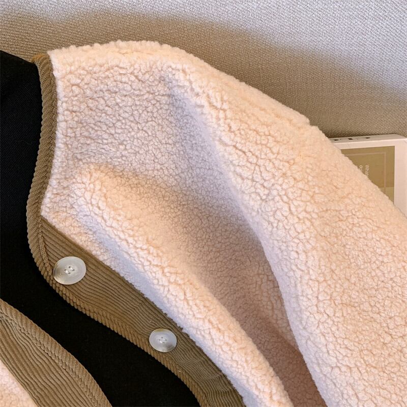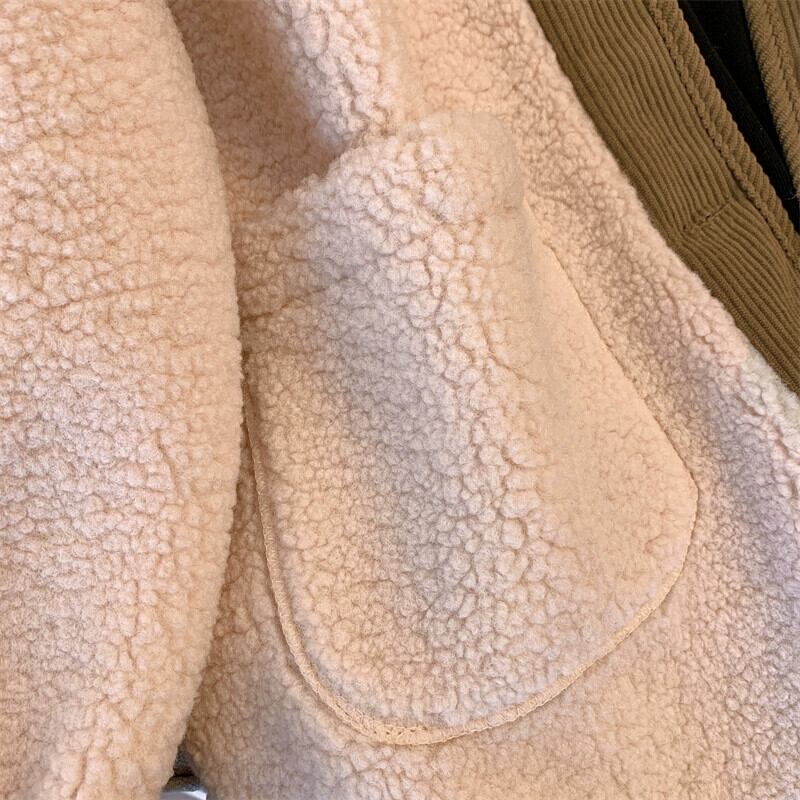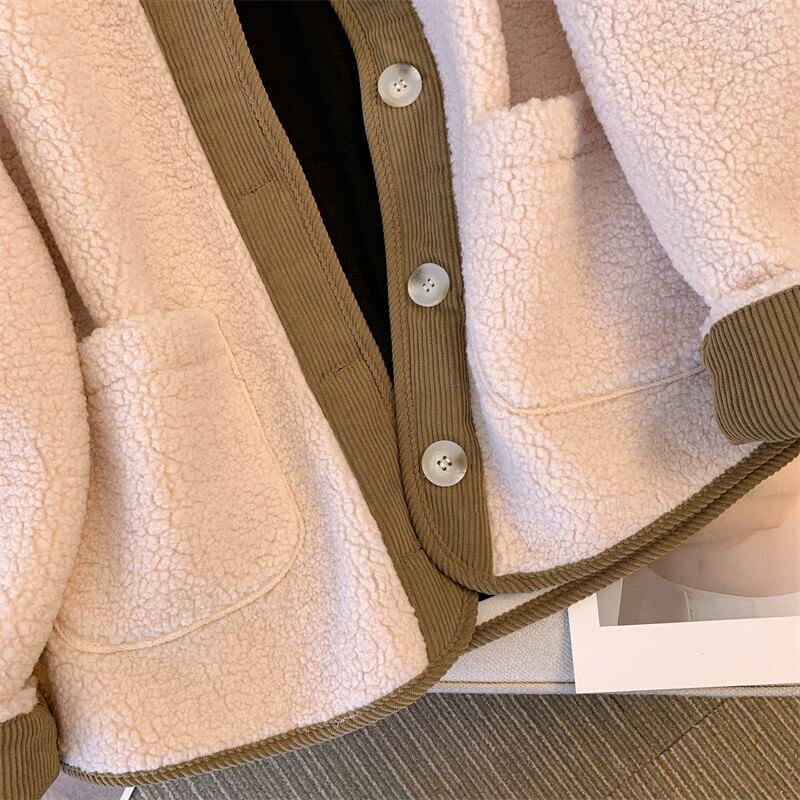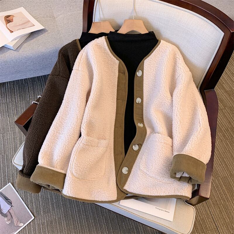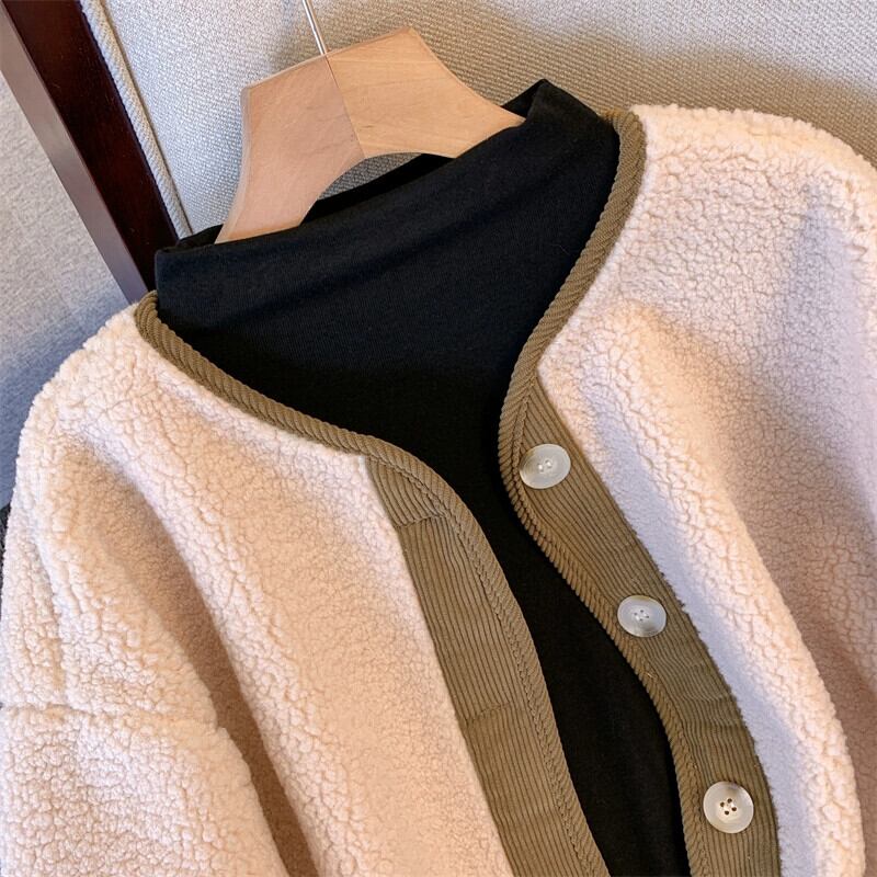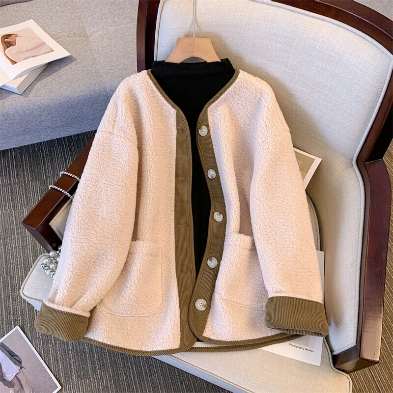 プラスサイズの女性の脂肪 mm ルーズカジュアルコントラストカラー秋の新 2023 デザイン香港スタイルのレトロなラムウールジャケット 大きめサイズ オータム 秋物 8884137987040730