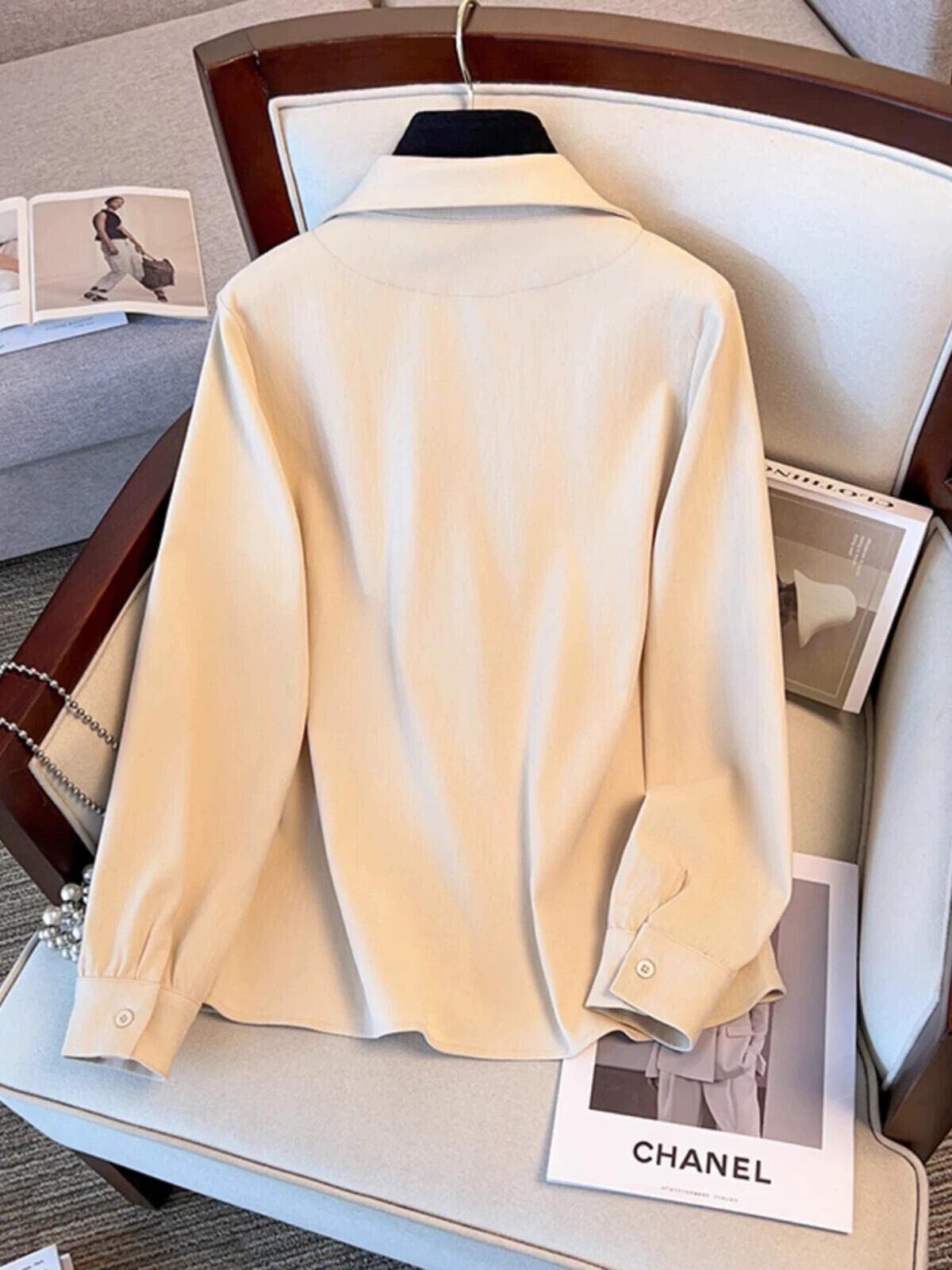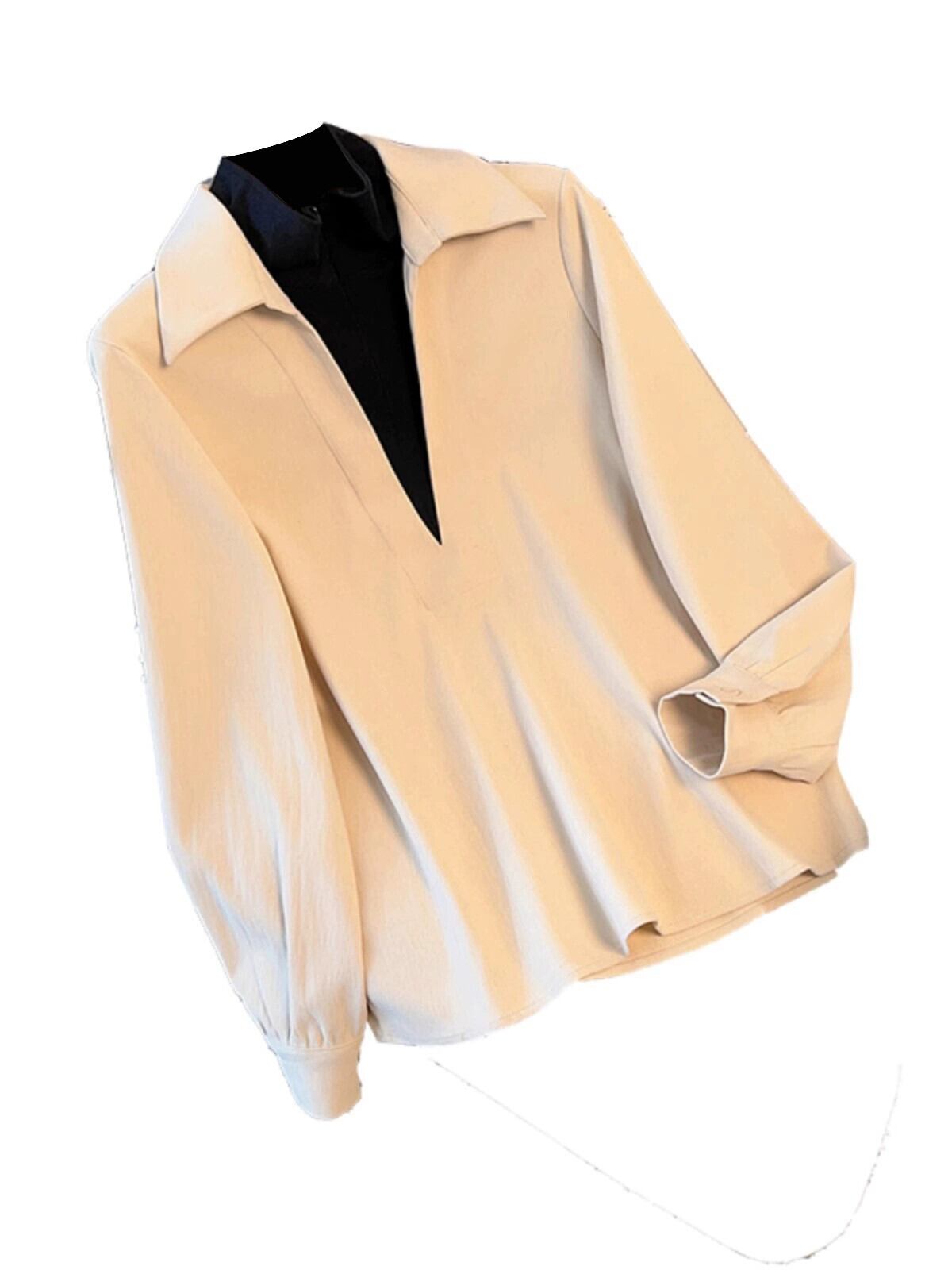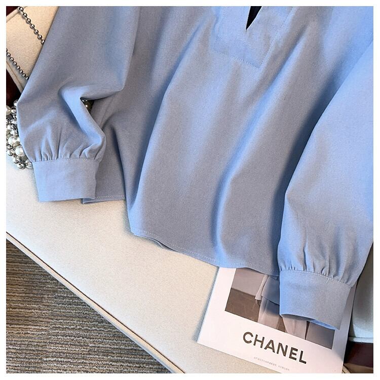 大きいサイズのハイエンドハイカラーフェイクツーピース長袖シャツ女性の秋と冬の脂肪mmデザインシャツ痩身気質トップ ロング 大きめサイズ オータム 秋物 ウィンター 冬物 8884127530074138