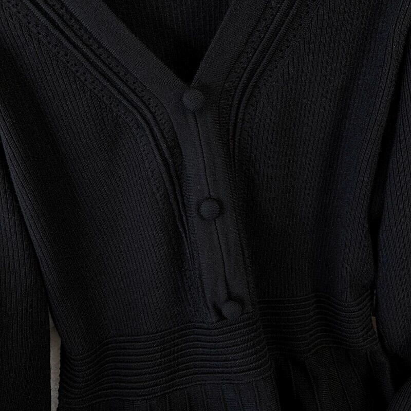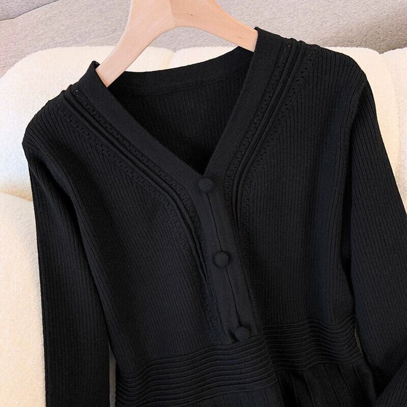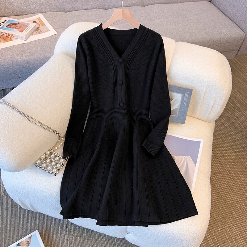 プラスサイズの秋の新フレンチヘップバーンスタイル V ネックニットドレス女性脂肪ミリメートル痩身 A ライン底スカートセータースカート 大きめサイズ オータム 秋物 Vネック Aライン 8884122460928229