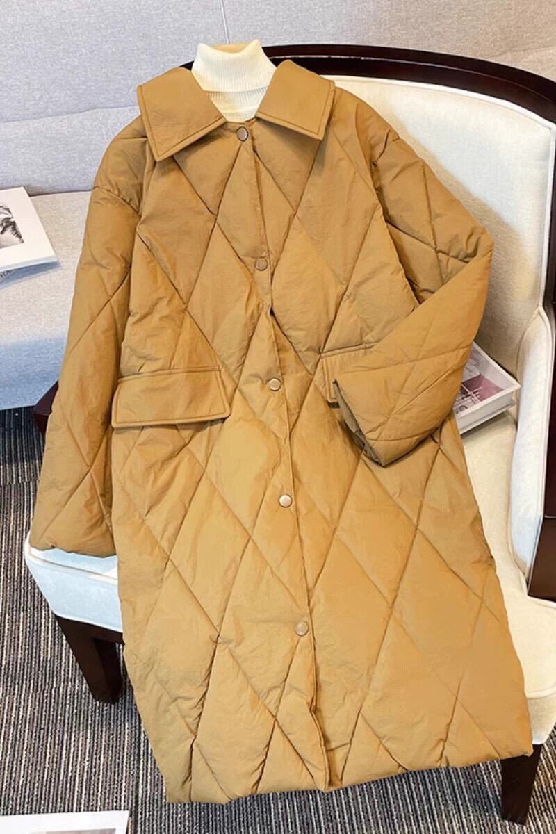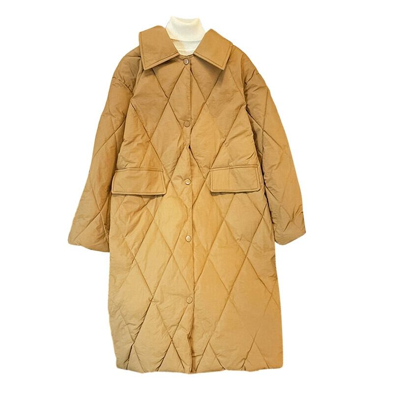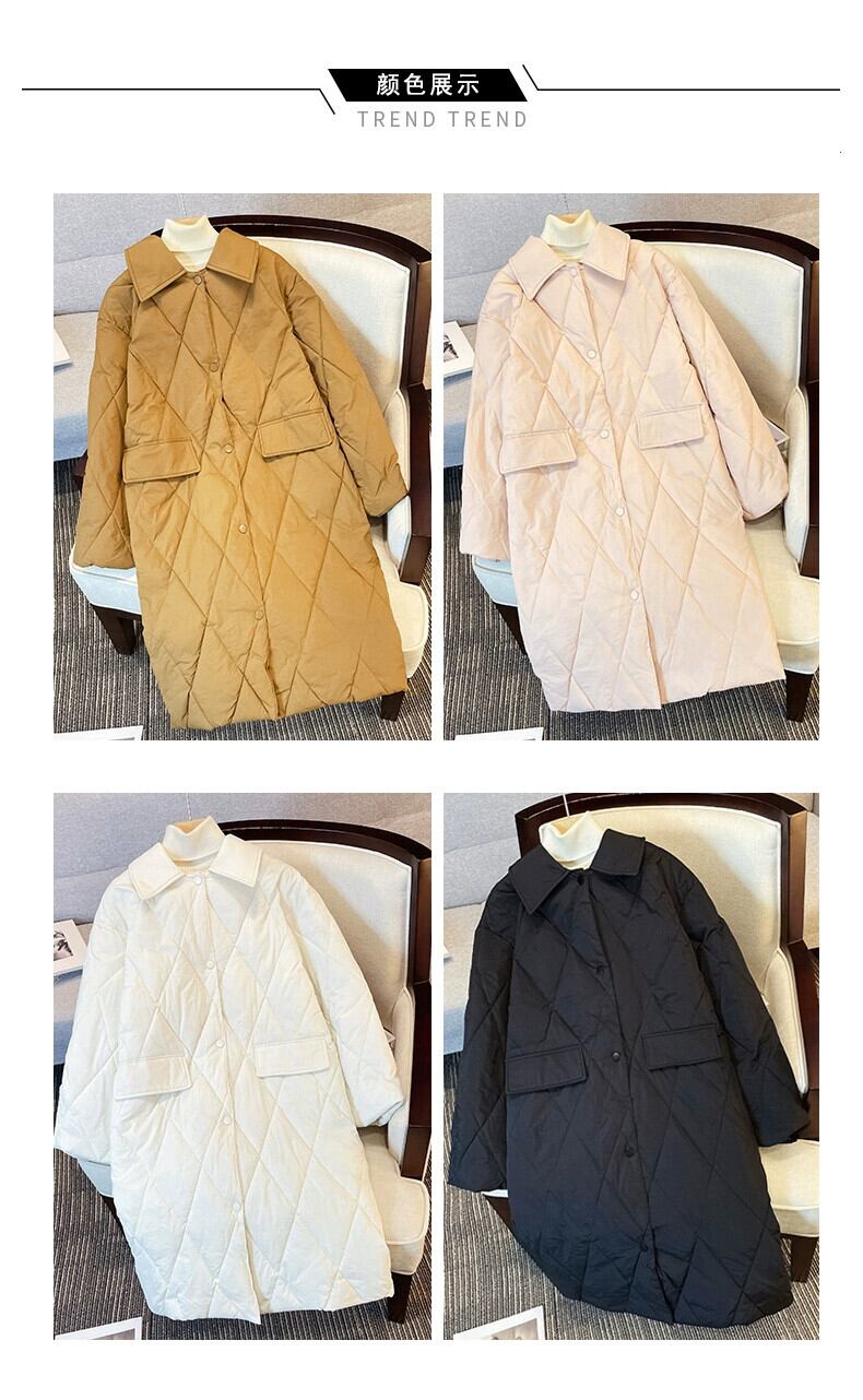 プラスサイズの女性の 2023 冬の新しいスタイル少し太い MM ファッションカジュアル無地菱形チェック柄ロングコットンコートトレンディ 大きめサイズ ウィンター 冬物 ソリッドカラー 8884128187007042