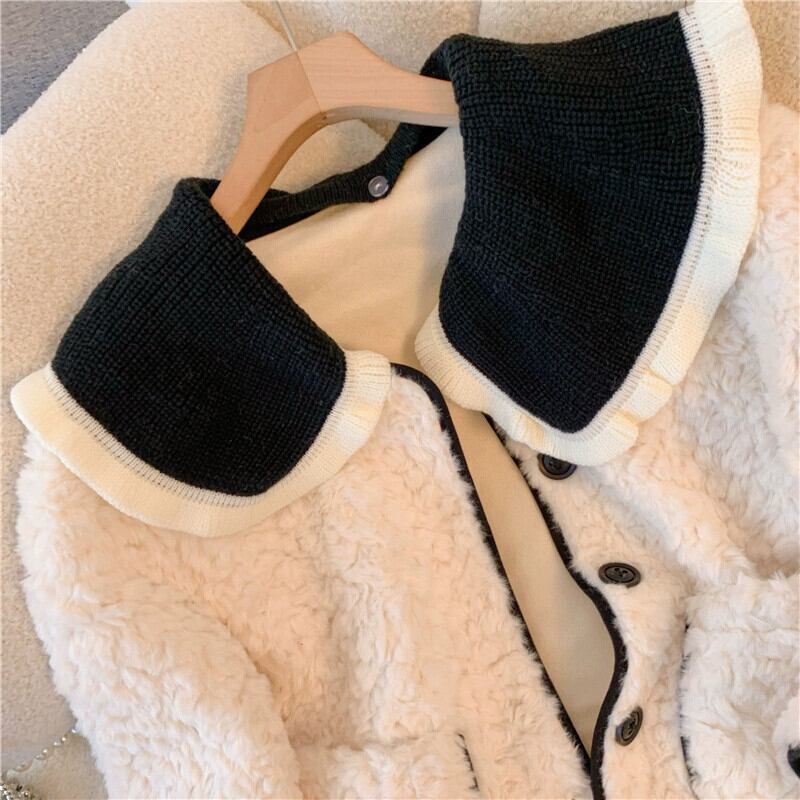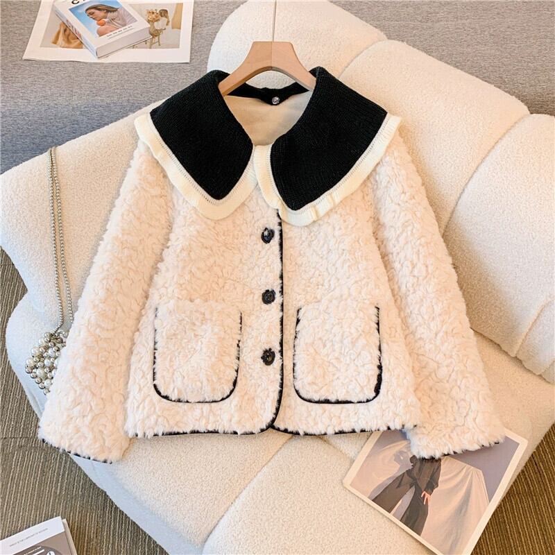 プラスサイズの女性の脂肪 mm デザイン人形襟ラムウール綿コート冬の新 2023 ルーズデザインコート コットン 大きめサイズ ウィンター 冬物 888419390138892
