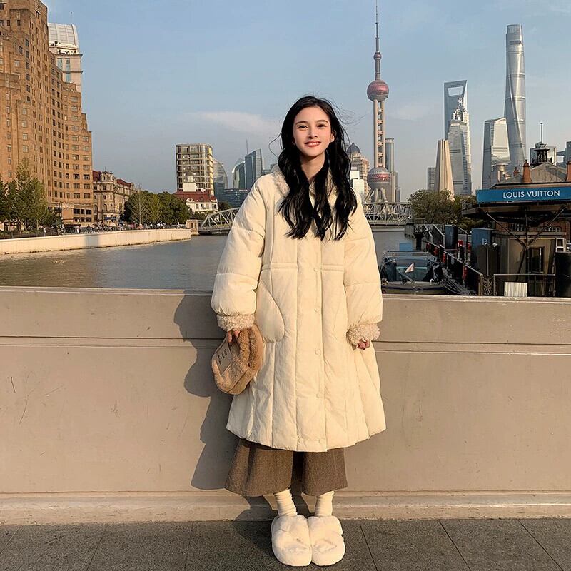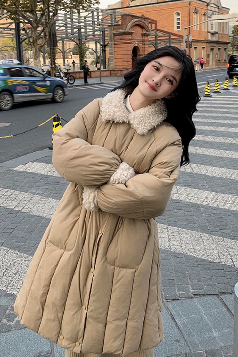 プラスサイズの婦人服ファット mm 秋の新スタイル 2023 スプライシングラムヘアダウンコットンコートルーズ痩身ハイエンドコートトレンド 大きめサイズ オータム 秋物 8884178921275433
