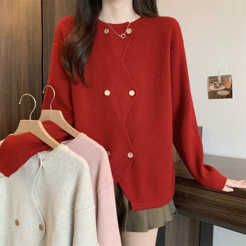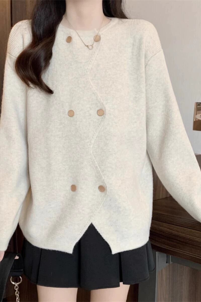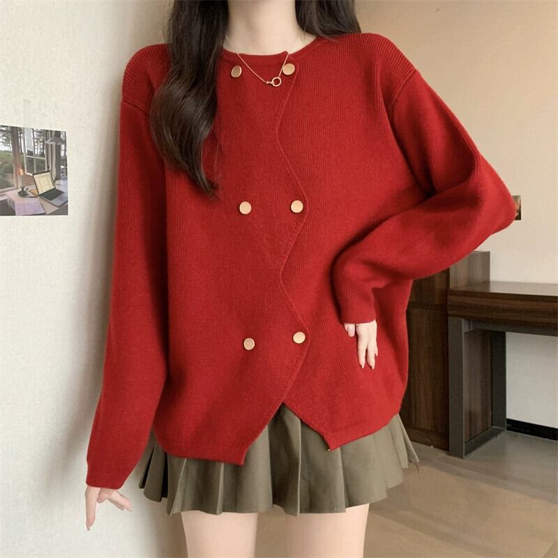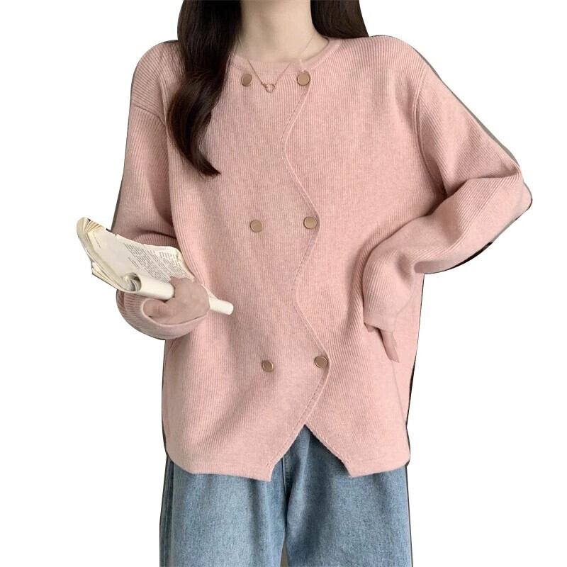 ニットセーターレディース大きいサイズ2023秋冬スタイルファットMM不規則なダブルブレスト西洋スタイル万能カーディガン長袖セーター ロング 大きめサイズ オータム 秋物 ウィンター 冬物 8884141915619499