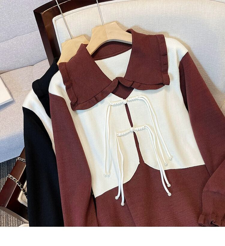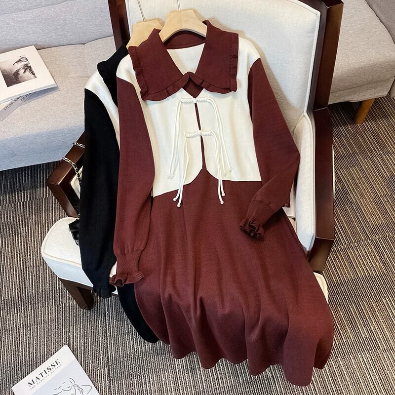 プラスサイズの女性の脂肪ミリメートルデザインニッチミッドレングススカート秋の新 2023 人形襟レトロ年齢軽減ドレス 大きめサイズ オータム 秋物 8884117717328685