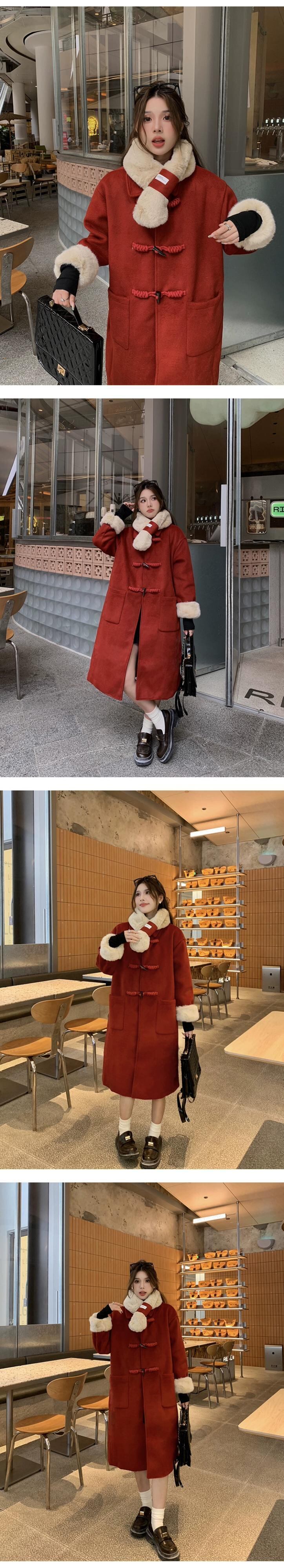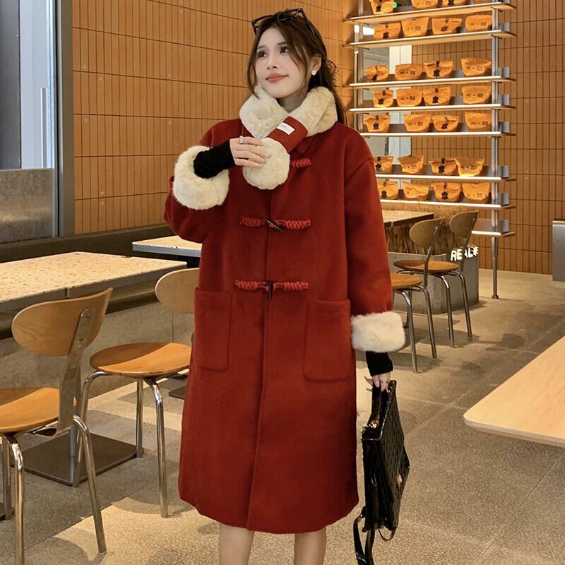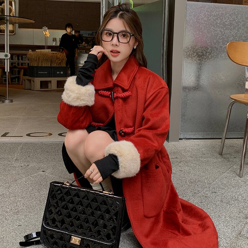 プラスサイズの婦人服ファットミリメートル秋の新スタイル 2023 ファッションホーンボタンウールコートルーズスタイルロングウールコート 大きめサイズ オータム 秋物 8884171297683347