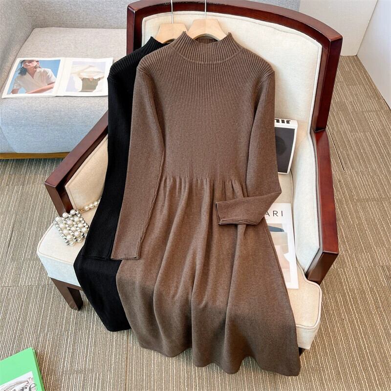 プラスサイズの婦人服 2023 秋と冬の新しいスタイルの脂肪、ファッショナブルでスリムな、ミッドレングスのニットドレストレンディ 大きめサイズ オータム 秋物 ウィンター 冬物 8884179357234802