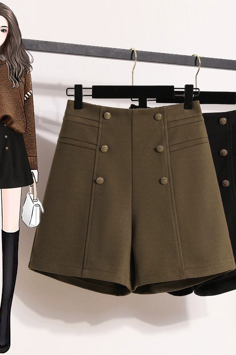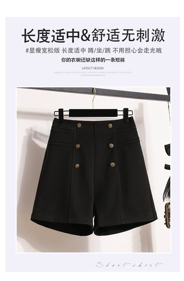 プラスサイズの秋と冬の新しいアウターウェアウールカジュアルショートパンツ女性、太いmm、スリムな気質、ハイウエスト、Aライン、ワイドレッグブーツパンツ、トレンディ ハイウェスト 大きめサイズ オータム 秋物 ウィンター 冬物 ショーツ ブルマー 8884162731066575