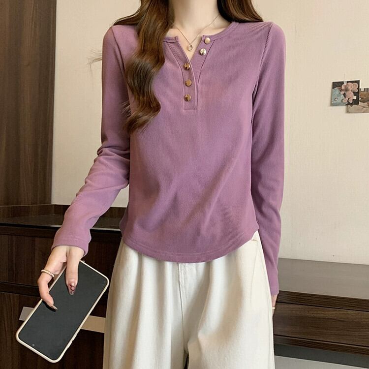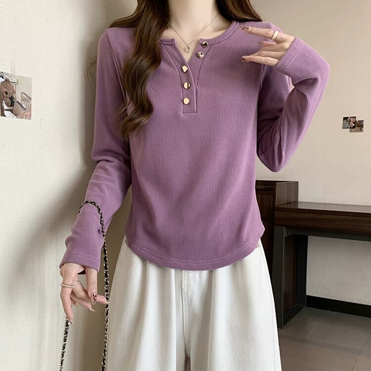 大きいサイズ肥厚セミオープンカラー不規則な長袖 Tシャツ秋と冬の新しいスタイルの気質インナー重ね着シャツ痩身トップ女性 ロング 大きめサイズ オータム 秋物 ウィンター 冬物 8884172846172473