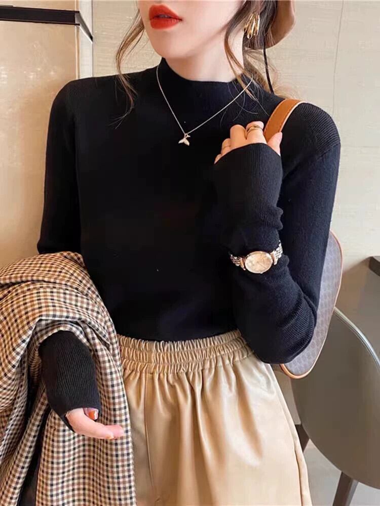 プラスサイズの女性の脂肪 mm ニット底女性の秋と冬の人気の美しいセータースリム長袖ミッドカラートップ ロング 大きめサイズ オータム 秋物 ウィンター 冬物 8884170443950307
