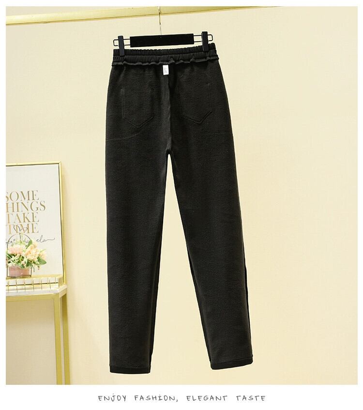 プラスサイズの女性のカジュアルパンツ女性の 2023 新しいデニムプラスベルベット肥厚弾性ハイウエスト弾性脂肪 MM ストレートパンツ ハイウェスト エラスティック 伸縮 大きめサイズ 8884168601715595