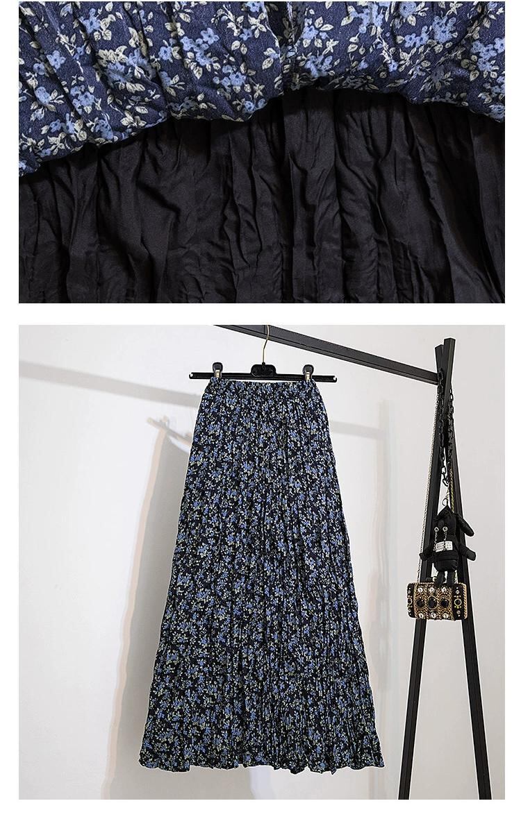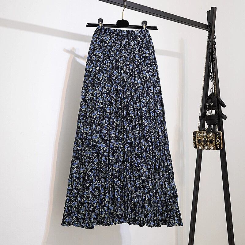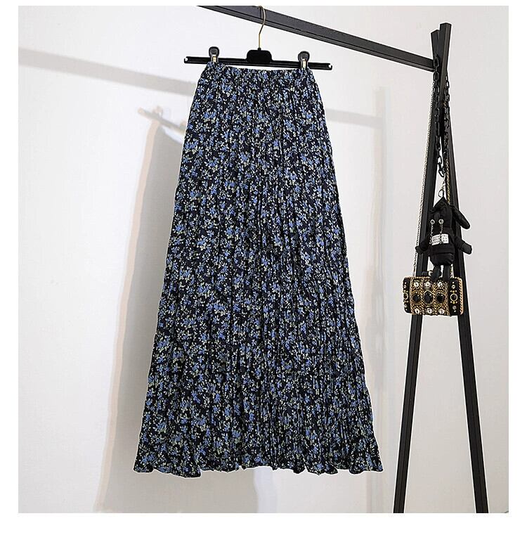 プラスサイズの婦人服 2023 トレンディな秋の新ファットシスタープリーツ花柄スカート弾性ウエストロングスカート痩身ビッグスイングスカート エラスティック 伸縮 大きめサイズ オータム 秋物 8884120510700204