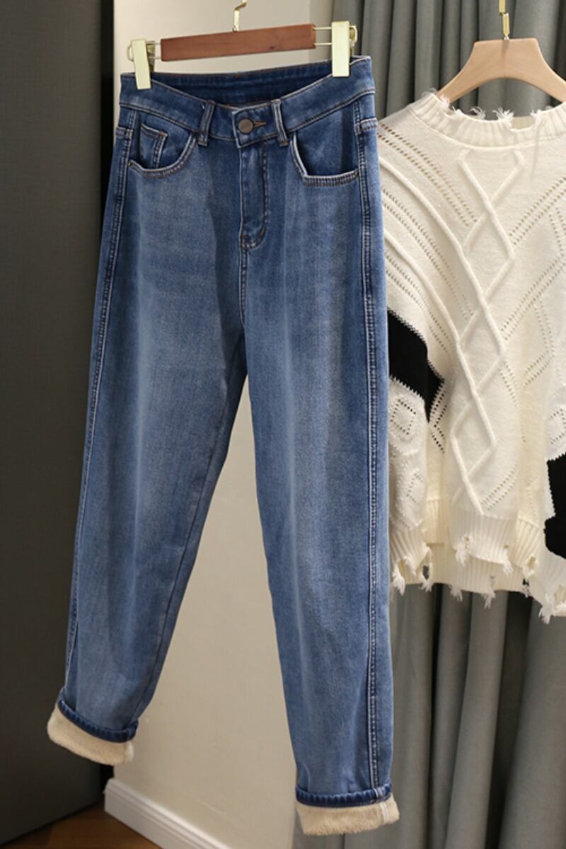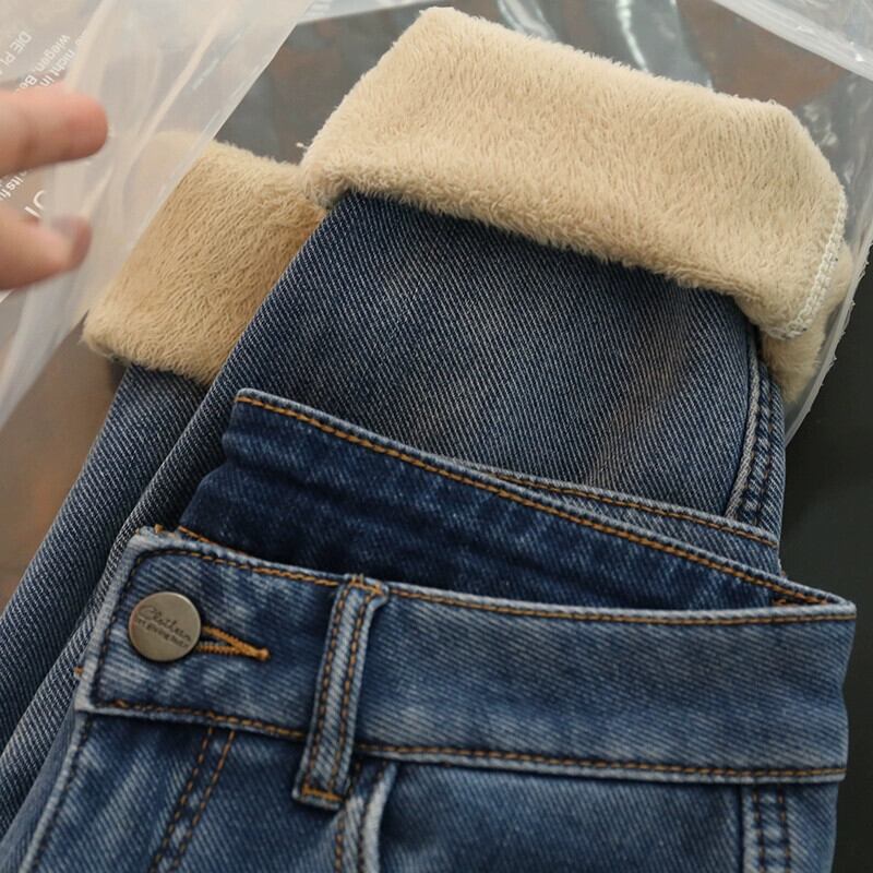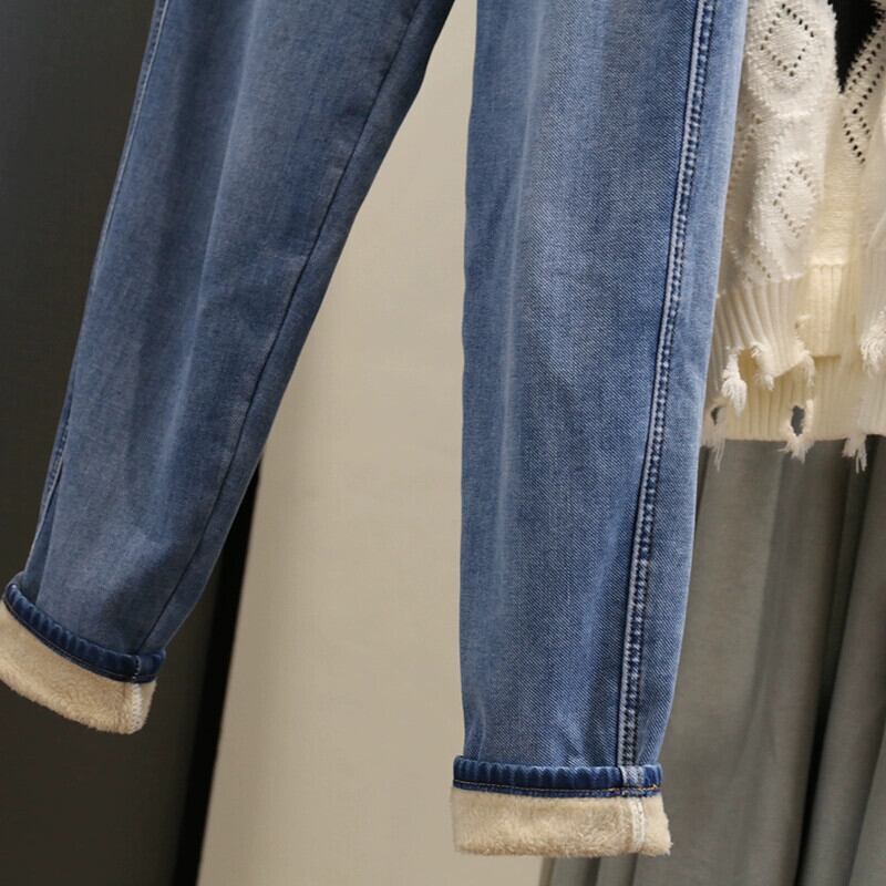 プラスサイズの婦人服ファットmm秋冬新スタイル2023梨型ボディ多用途スタイルジーンズプラスベルベット肥厚9点パンツ 大きめサイズ オータム 秋物 ウィンター 冬物 8884118973863453