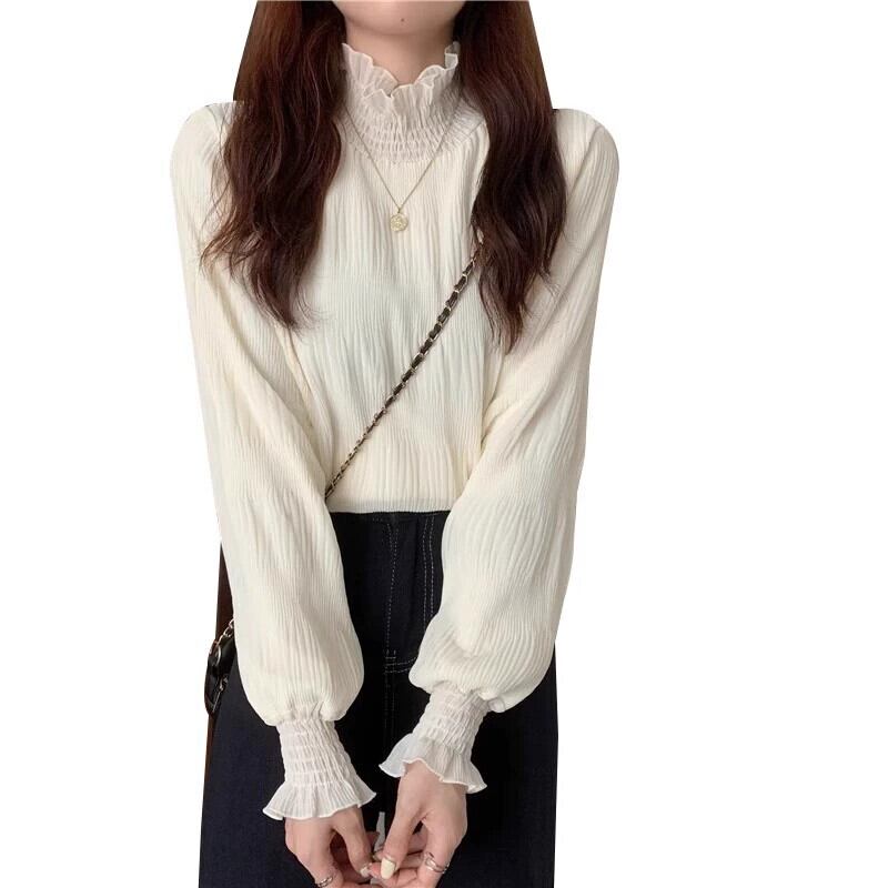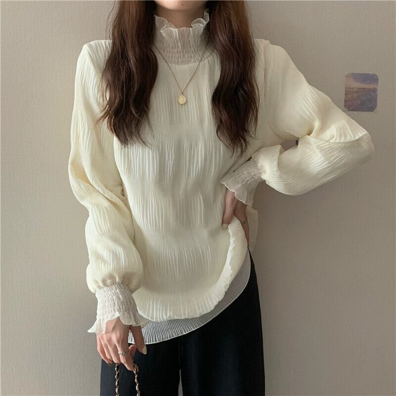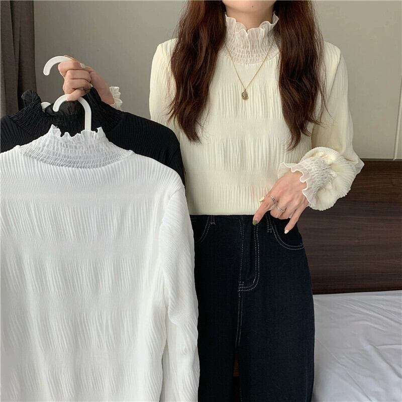 大きいサイズハーフタートルネックレースボトリングシャツ女性秋と冬プラスベルベットと肥厚インナーベルスリーブ真菌トップ脂肪mm 大きめサイズ オータム 秋物 ウィンター 冬物 8884172690879682