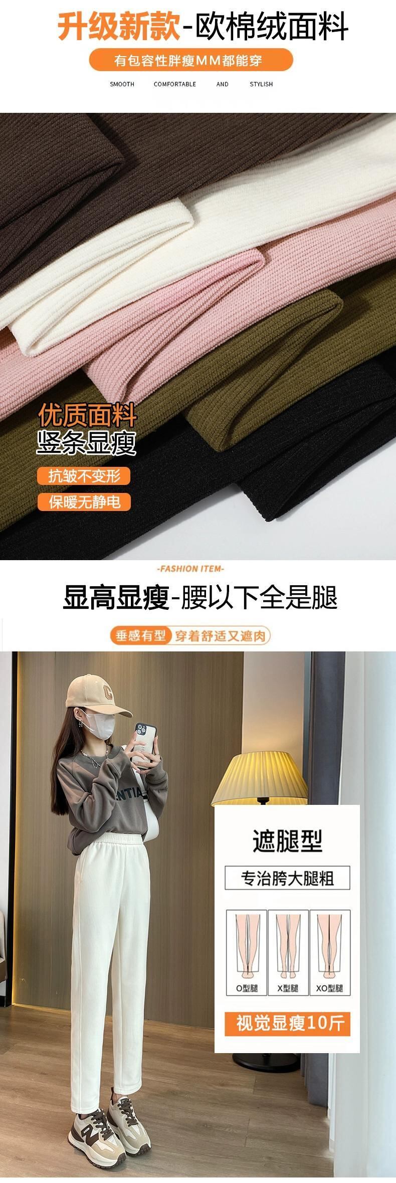 大きいサイズの秋の新作シェニールプラスベルベット小脚パンツ太った女性がスリムに見えて万能なカジュアル大根ハーレムパンツ 大きめサイズ オータム 秋物 8884112694619261