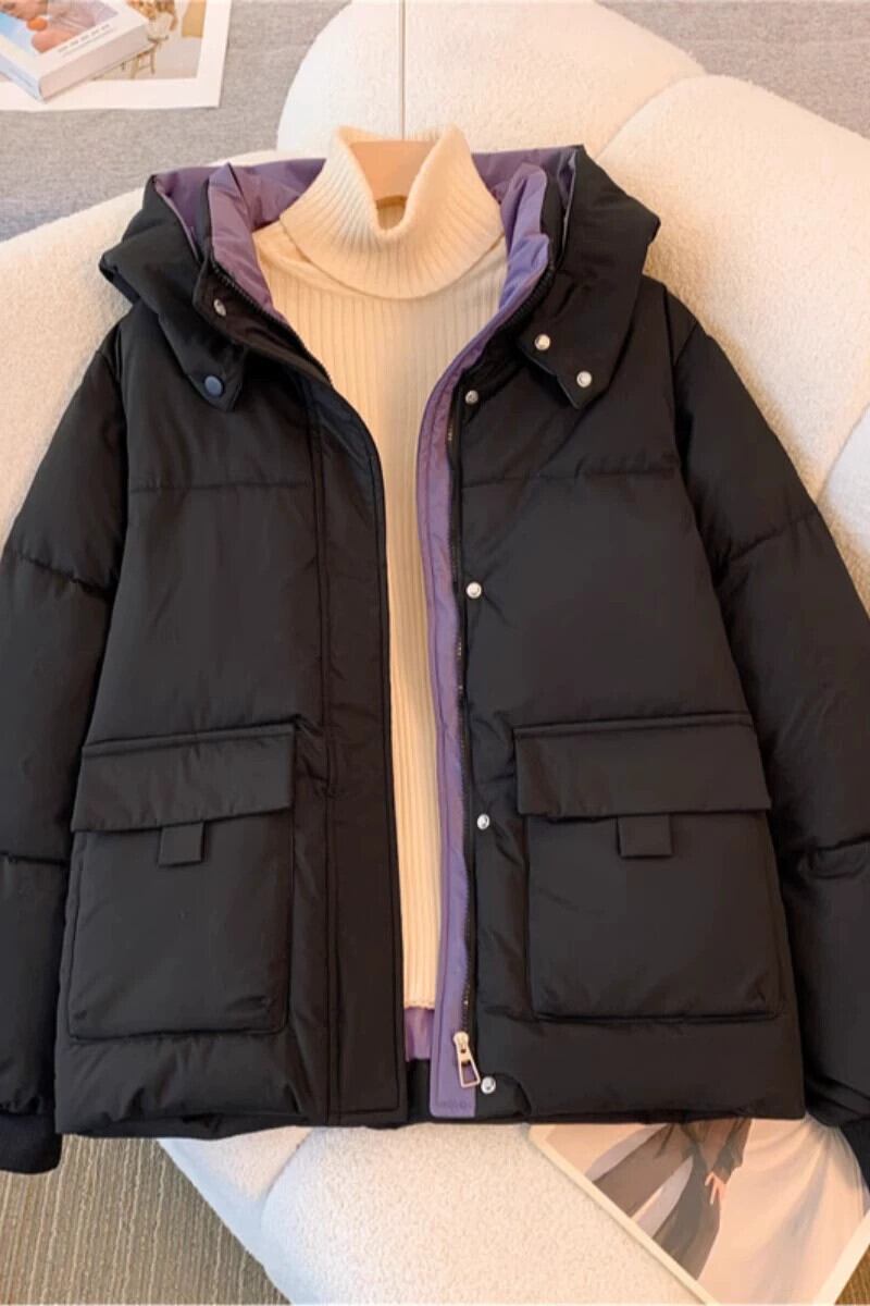 大きいサイズ 2023 新しい冬ファットシスターレディース長袖多用途ルーズ肥厚コントラストカラーフード付きダウンジャケットトレンディ ロング 大きめサイズ ウィンター 冬物 8884118251518773