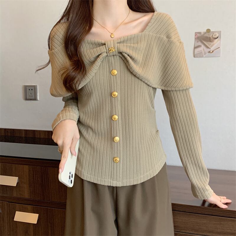 プラスサイズの女性の脂肪 mm 気質多目的スリムセーター冬の新 2023 弓腹カバー長袖トップ ロング リボン 大きめサイズ ウィンター 冬物 888411183620880