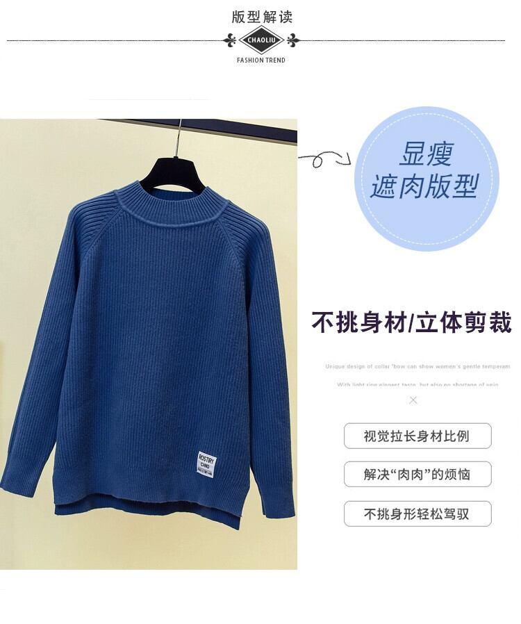 プラスサイズの婦人服ファット mm 秋の新 2023 ファッショナブルなルーズでスリムなハーフタートルネックニットセーター多用途カジュアルトップス 大きめサイズ オータム 秋物 8884155545996903