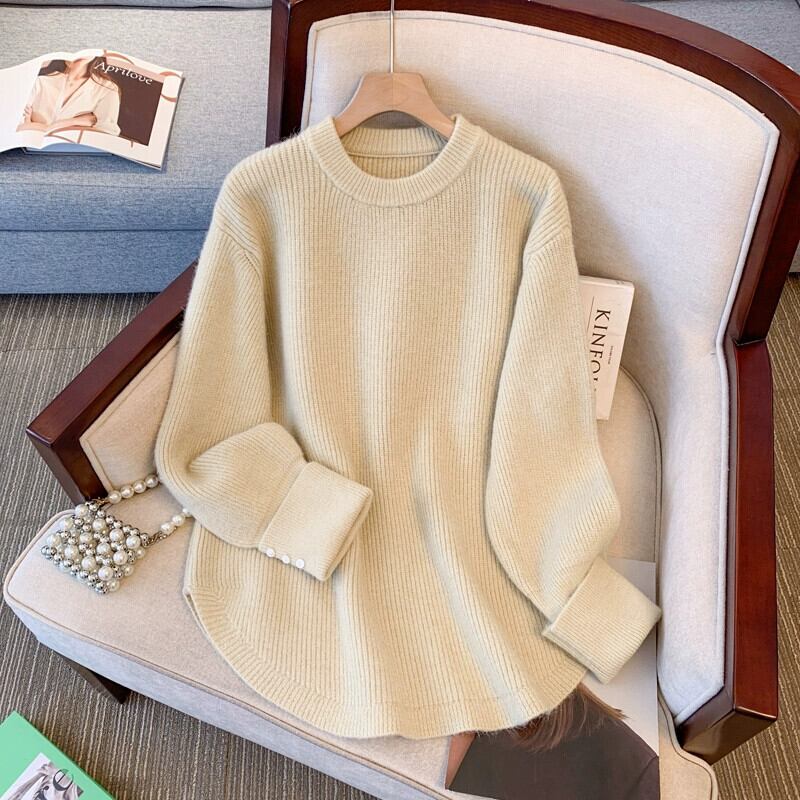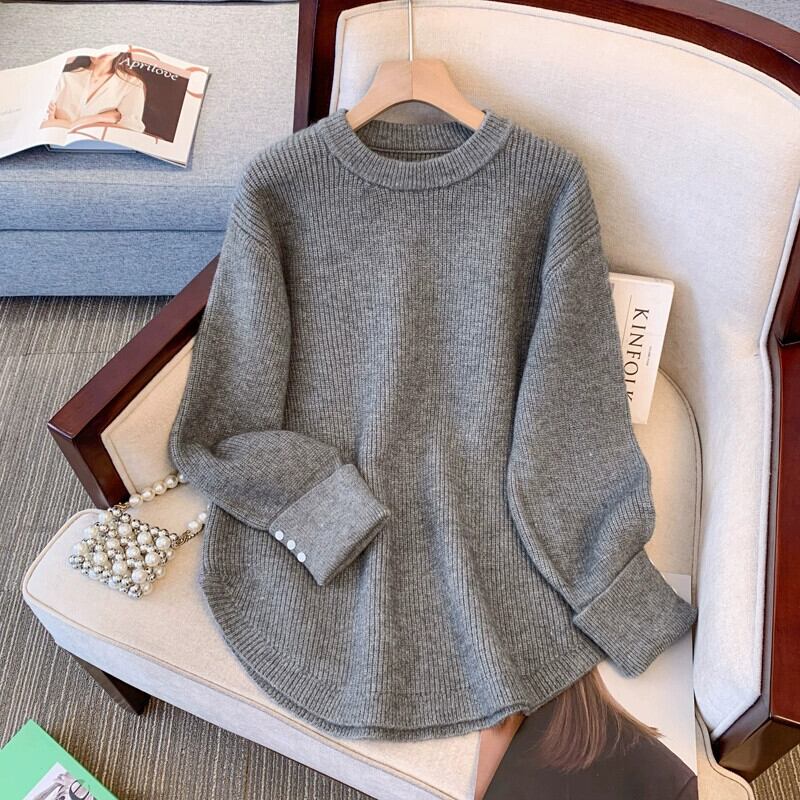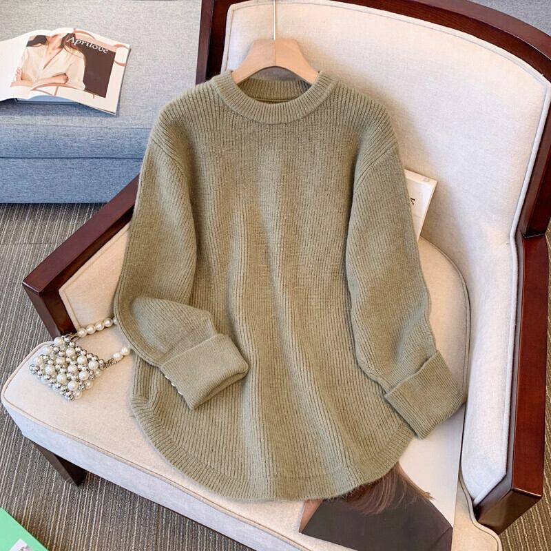 プラスサイズの婦人服 2023 秋と冬の新しいファットシスターラウンドネック長袖デザインルーズプルオーバーセータートレンディな ロング 大きめサイズ オータム 秋物 ウィンター 冬物 Oネック 8884142157898650
