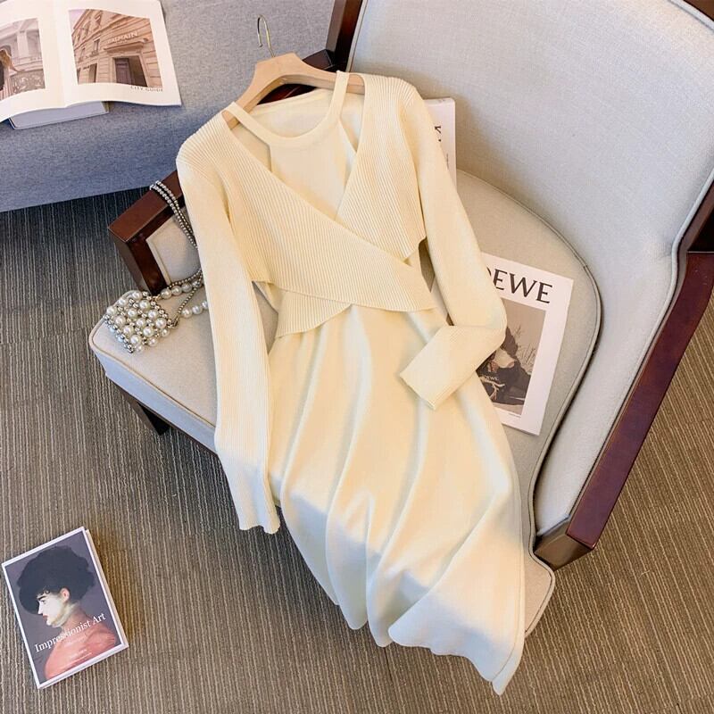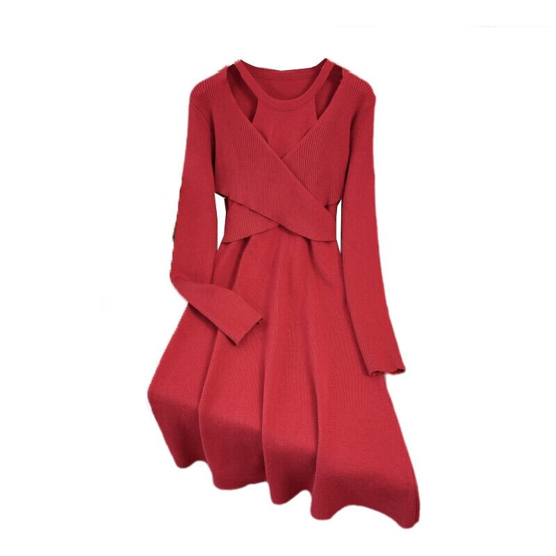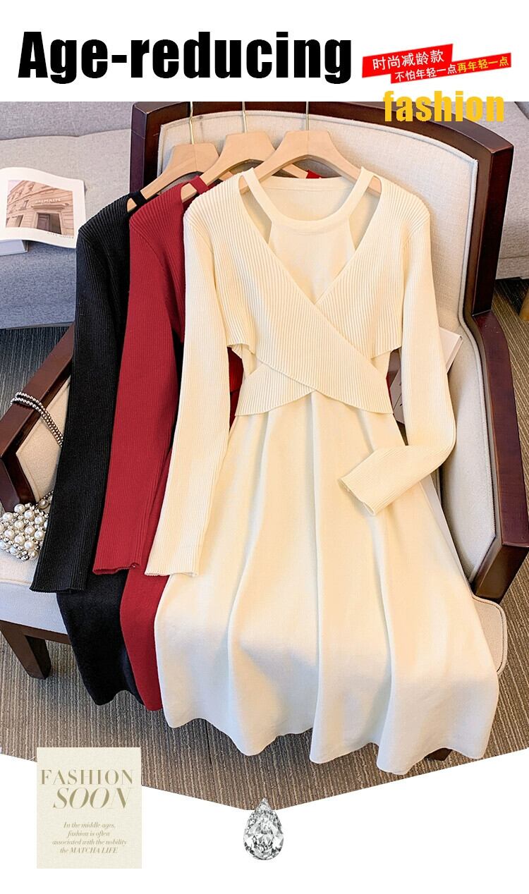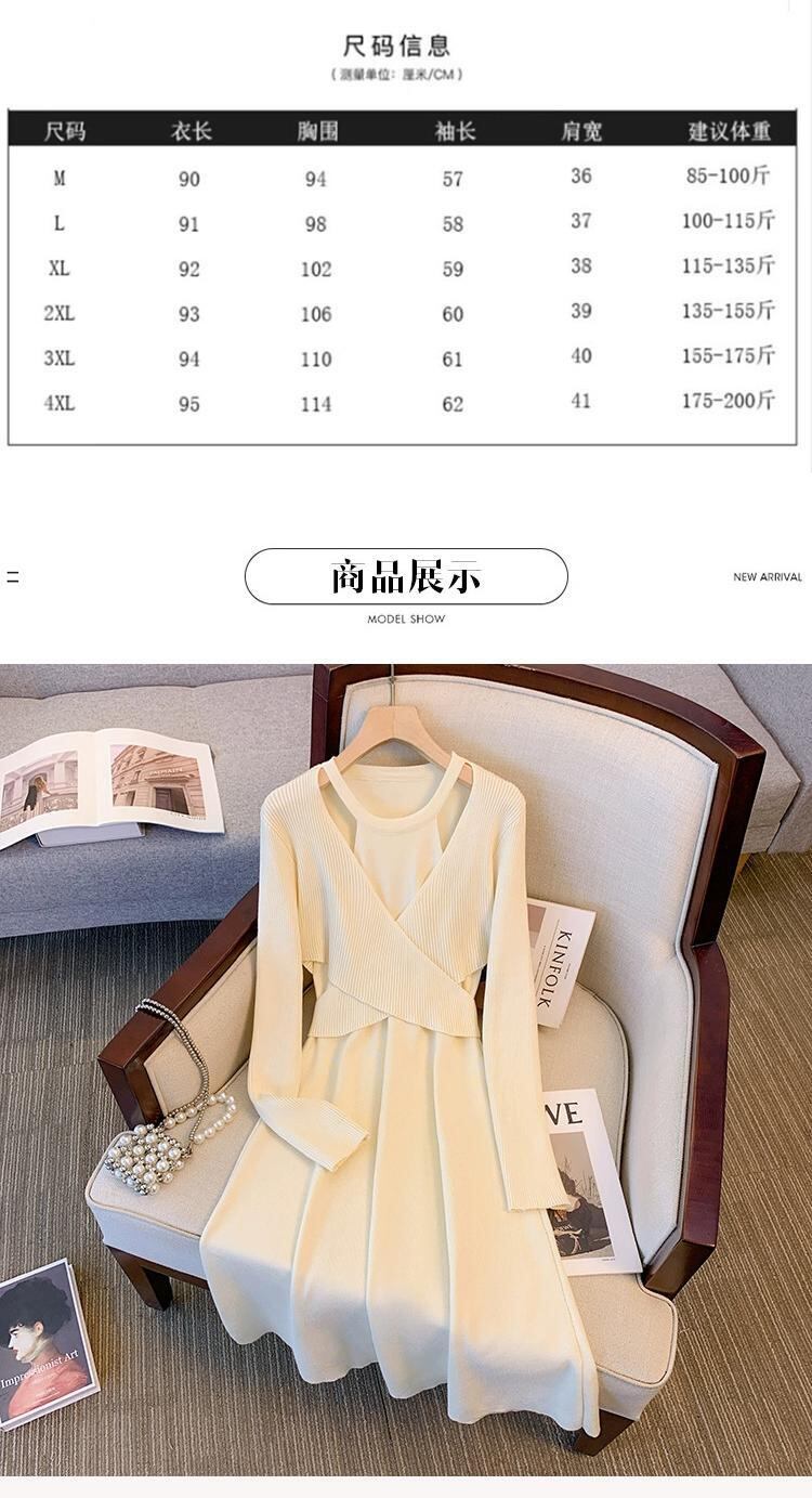 プラスサイズの婦人服ファット mm 秋冬新スタイル 2023 ファッショナブルなデザインウエスト痩身 a ラインスカート無地多目的ドレス 大きめサイズ オータム 秋物 ウィンター 冬物 Aライン ソリッドカラー 8884154955644866