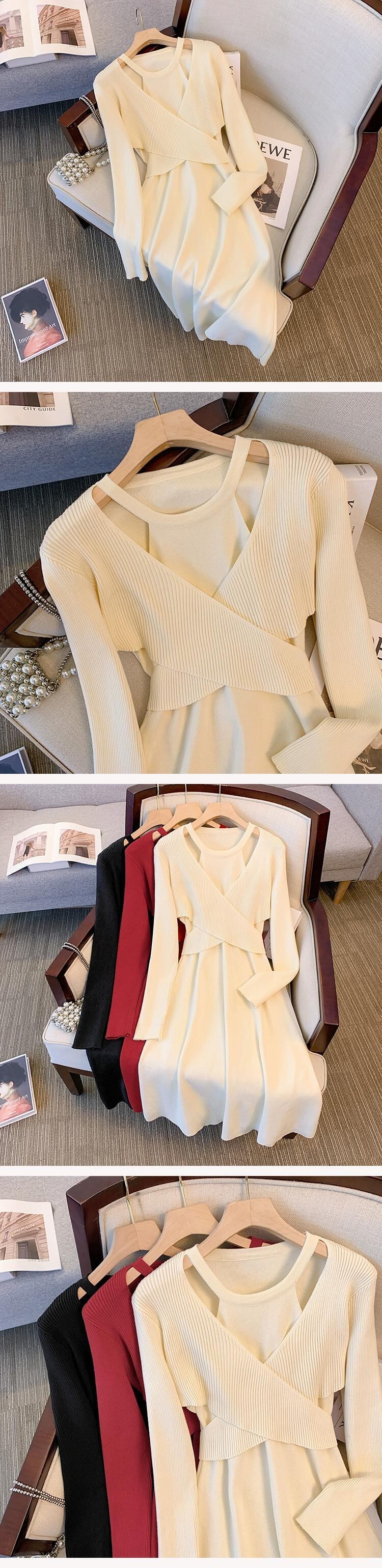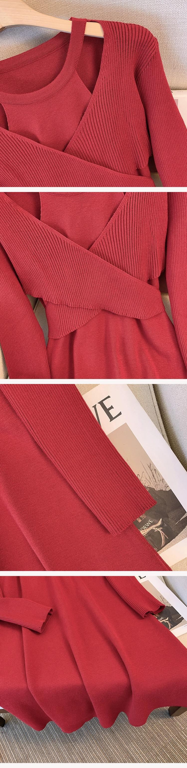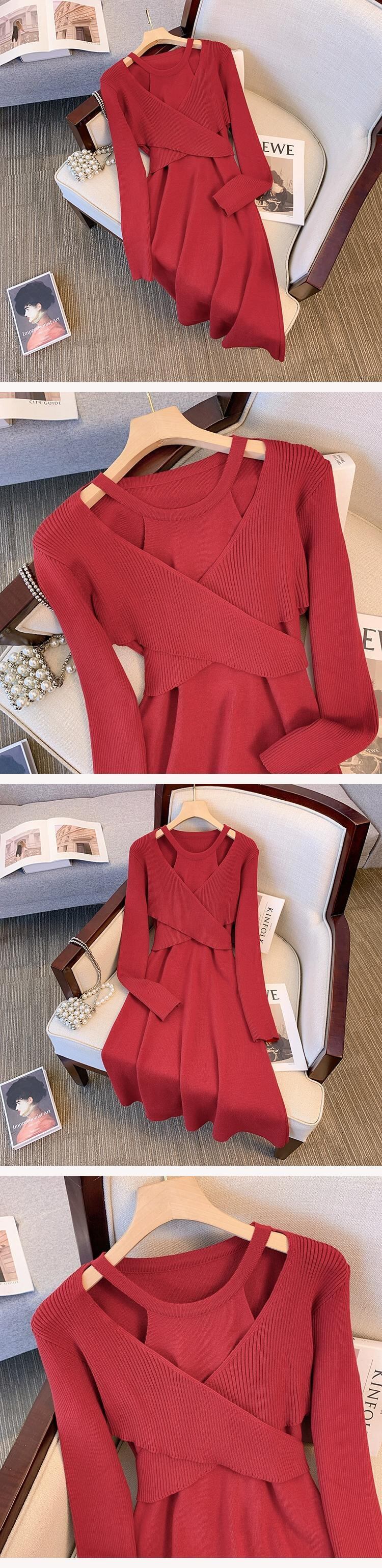 プラスサイズの婦人服ファット mm 秋冬新スタイル 2023 ファッショナブルなデザインウエスト痩身 a ラインスカート無地多目的ドレス 大きめサイズ オータム 秋物 ウィンター 冬物 Aライン ソリッドカラー 8884154955644866