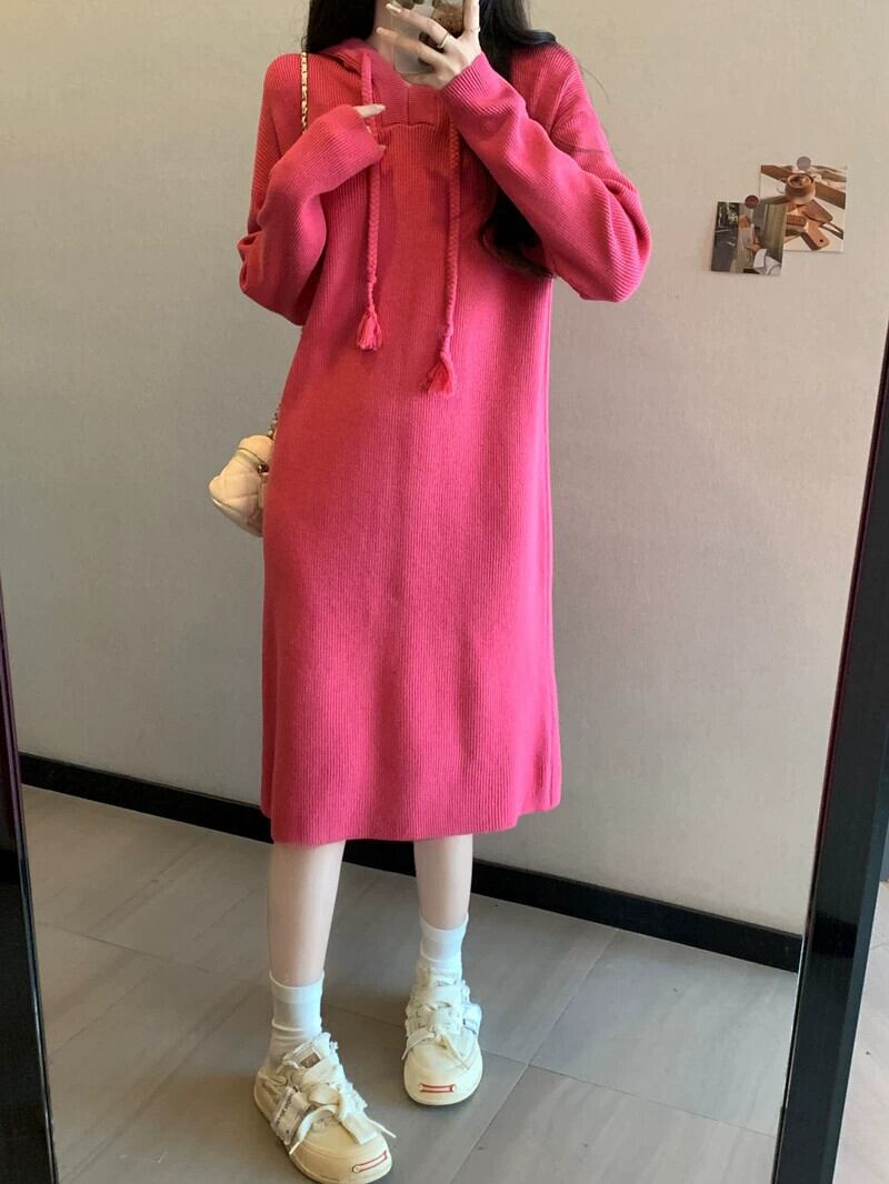 プラスサイズの婦人服ファットmm秋冬新スタイル2023怠惰なルーズスリムニットスカートデザインフレンチハイエンドドレス 大きめサイズ オータム 秋物 ウィンター 冬物 8884129327813010