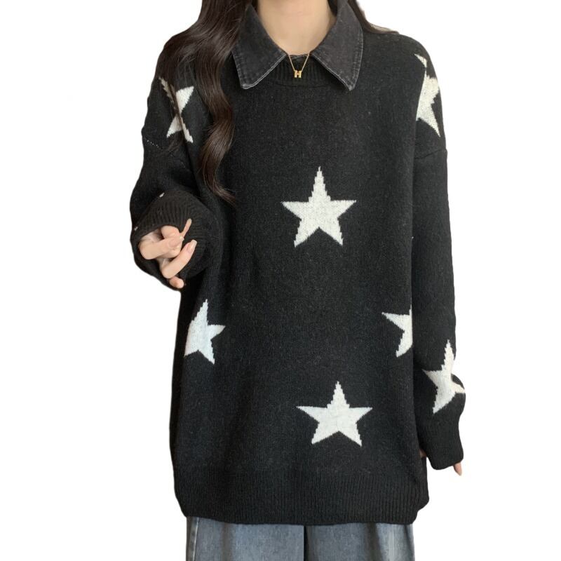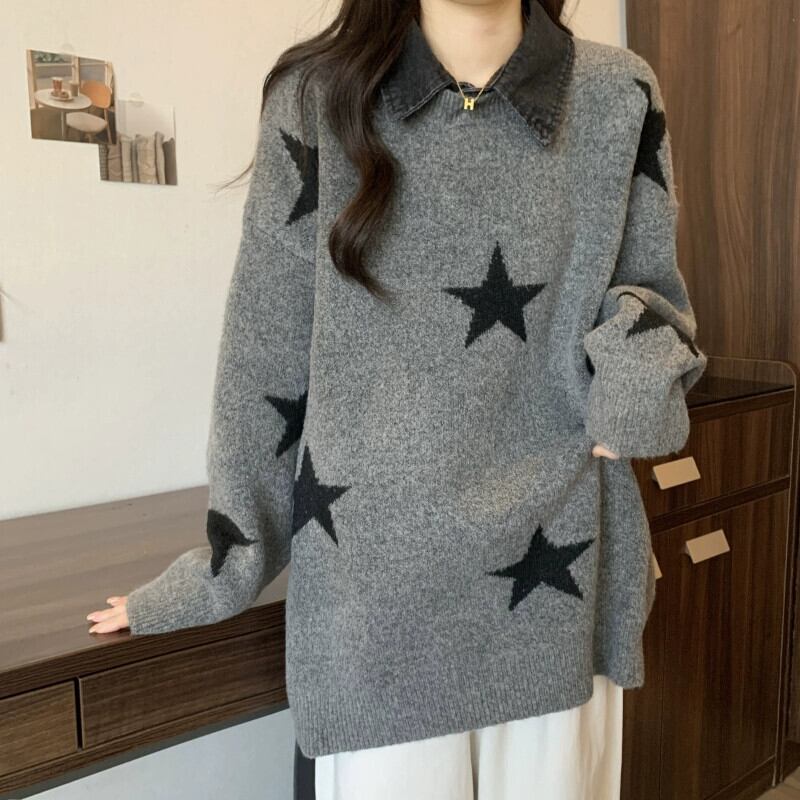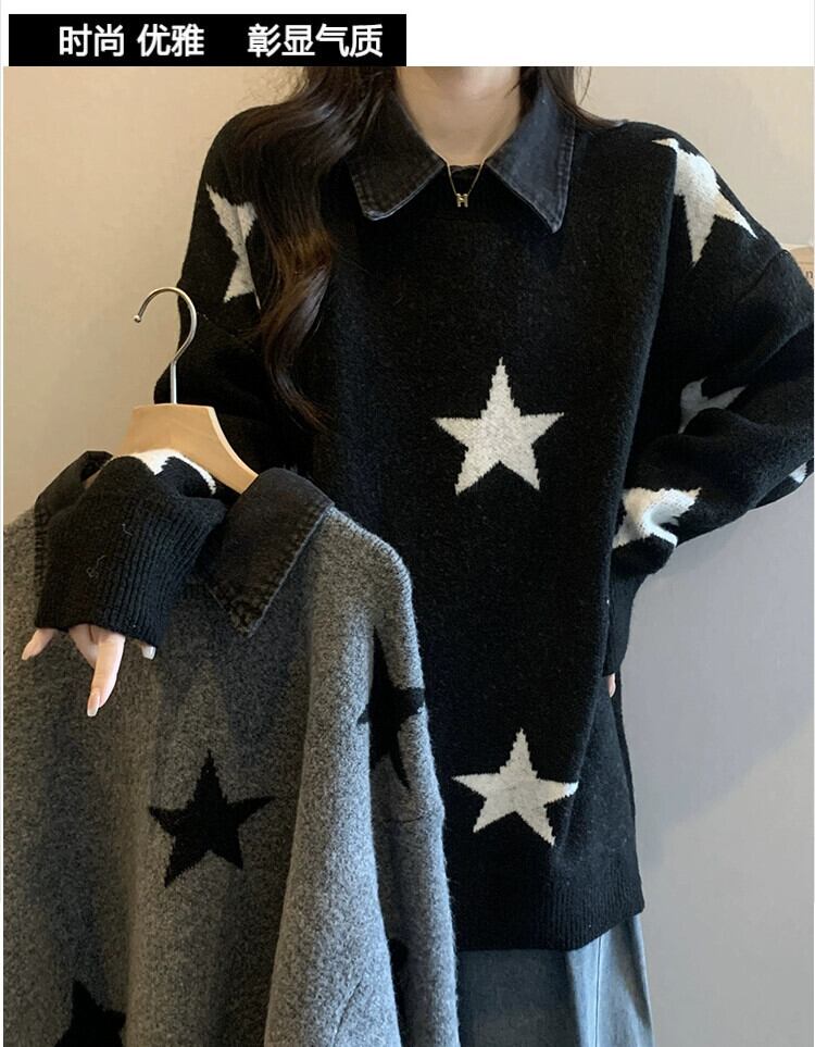 プラスサイズの婦人服ファット mm 秋と冬の新スタイル 2023 怠惰なレトロな肉を覆うセーターのデザイン取り外し可能な襟トップトレンディ 大きめサイズ オータム 秋物 ウィンター 冬物 8884125029654573